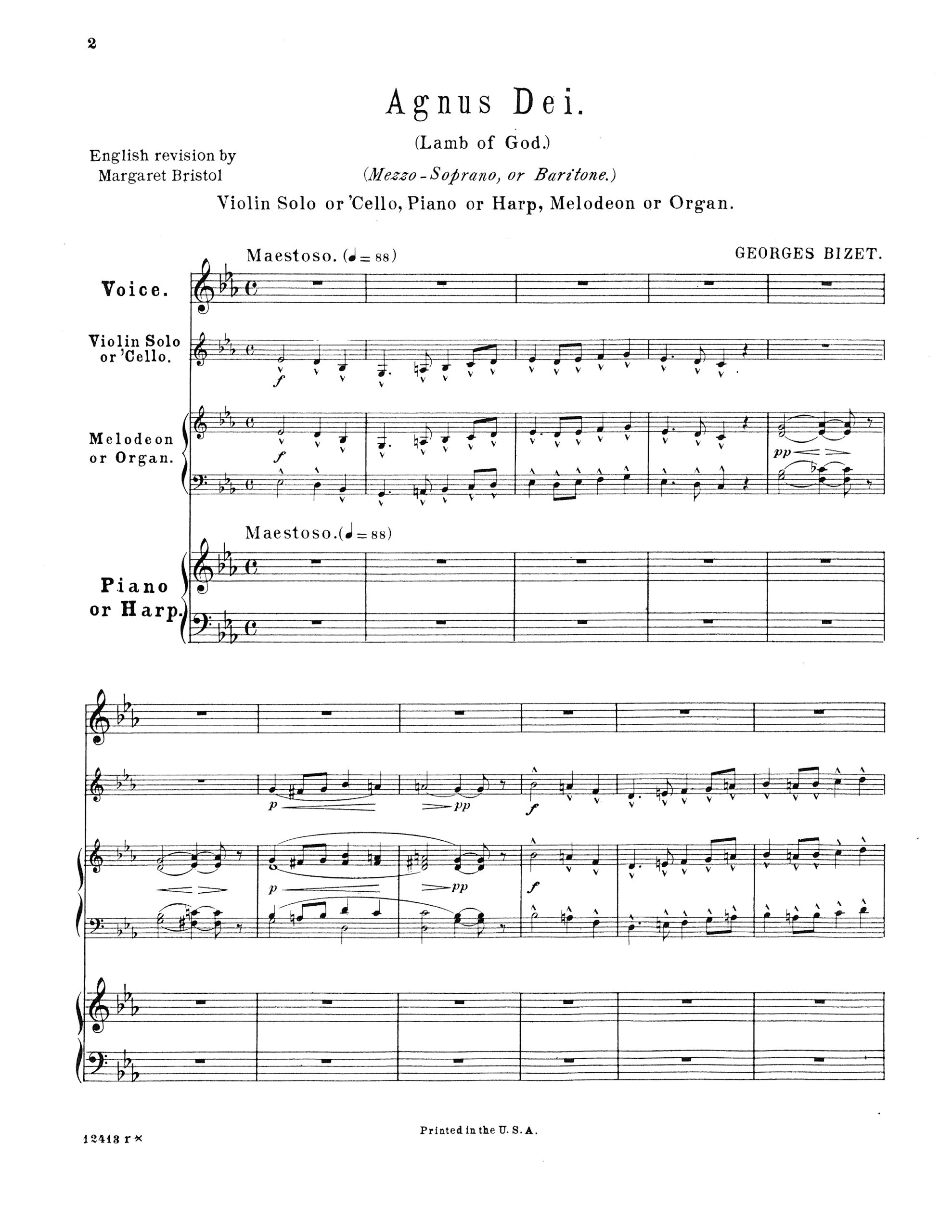 Title: Agnus Dei – O Lamb of God arranged from the Intermezzo of L’arlesienne by Ernest Guiraud