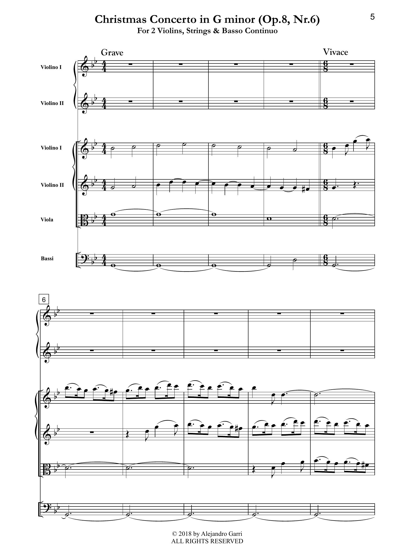 Torelli, Giuseppe (1658 – 1709) Christmas Concert in G minor (Op.8, Nr.6), for 2 Violins, Strings & Basso Continuo (full score & 6 parts)