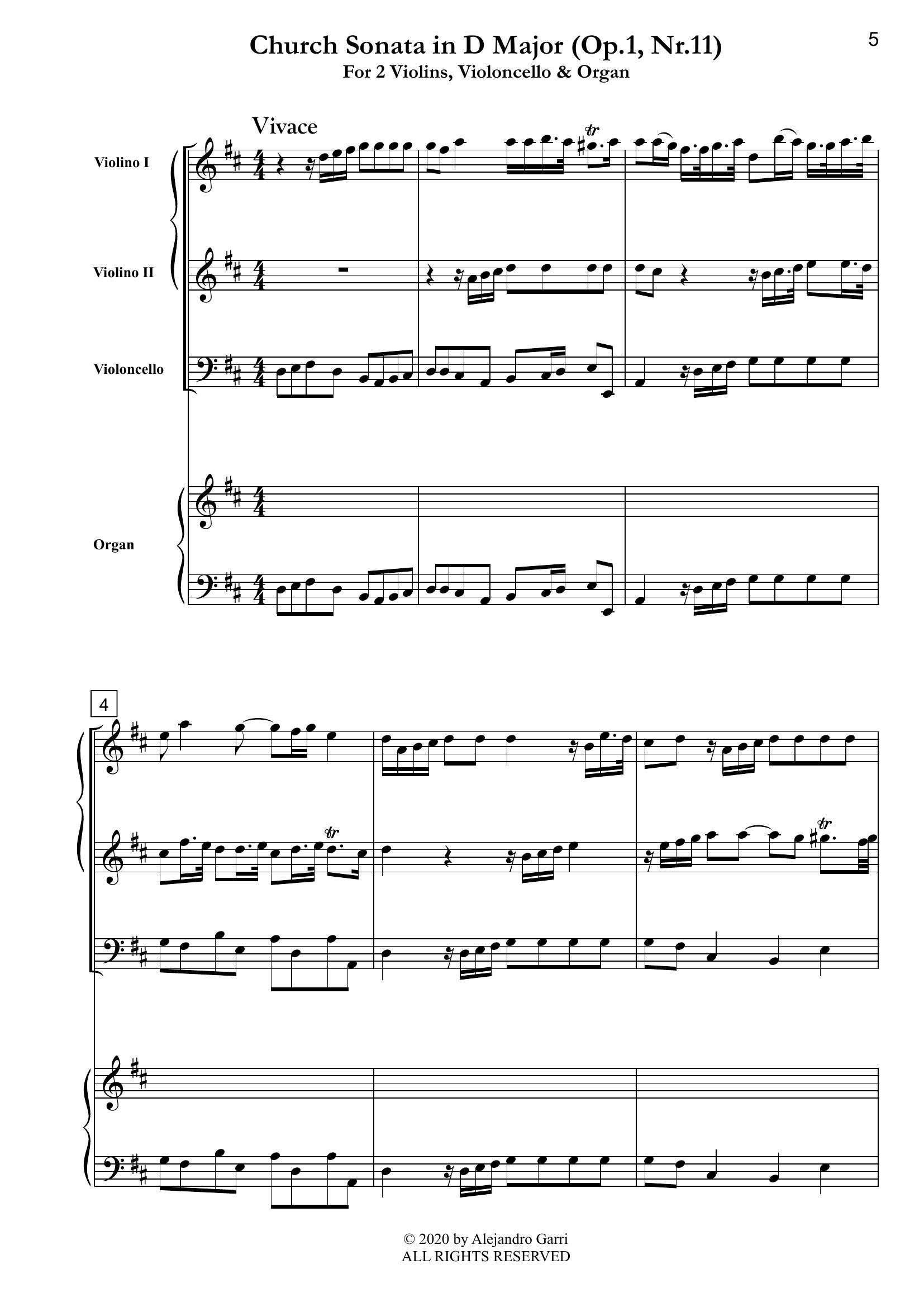 Caldara, Antonio (1671? – 1736) Church Sonata in F minor (Op.1, Nr.11), for 2 Violins, Violoncello & Organ (full score & 3 parts)