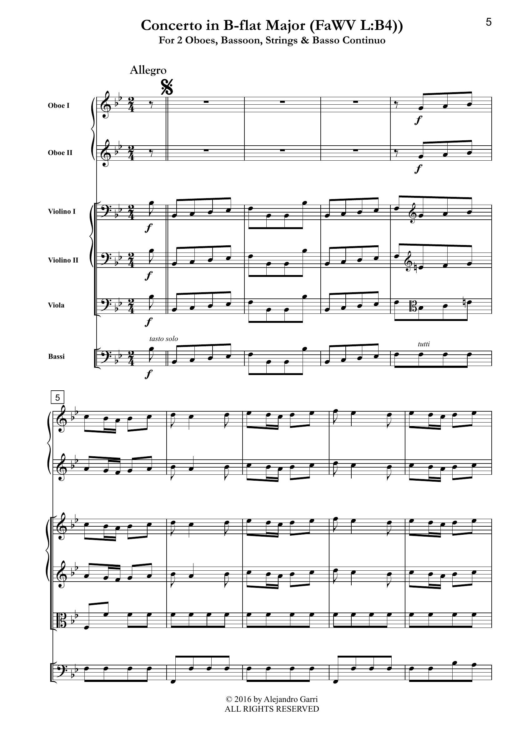 Fasch, Johann Fr. (1688 – 1758) Concerto in B-flat Major(FaWV L:B4), for 2 Oboes, Bassoon, Strings & Basso Continuo (full score)