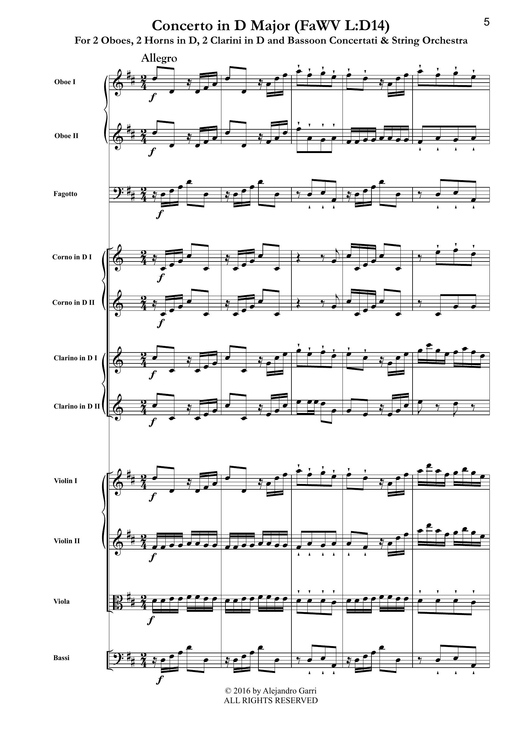 Fasch, Johann Friedrich (1688 – 1758) Concerto in D Major (FaWV L:D14), for 2 Oboes, 2 Horns in D, 2 Clarini in D and Bassoon Concertati & String Orchestra (full score)