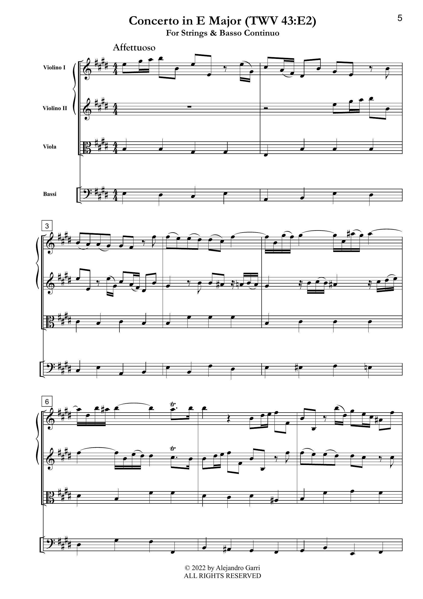 Telemann, Georg Ph. (1681-1767) Concerto in E Major (TWV 43:E2), for Strings & Basso Continuo (full score & 4 parts)