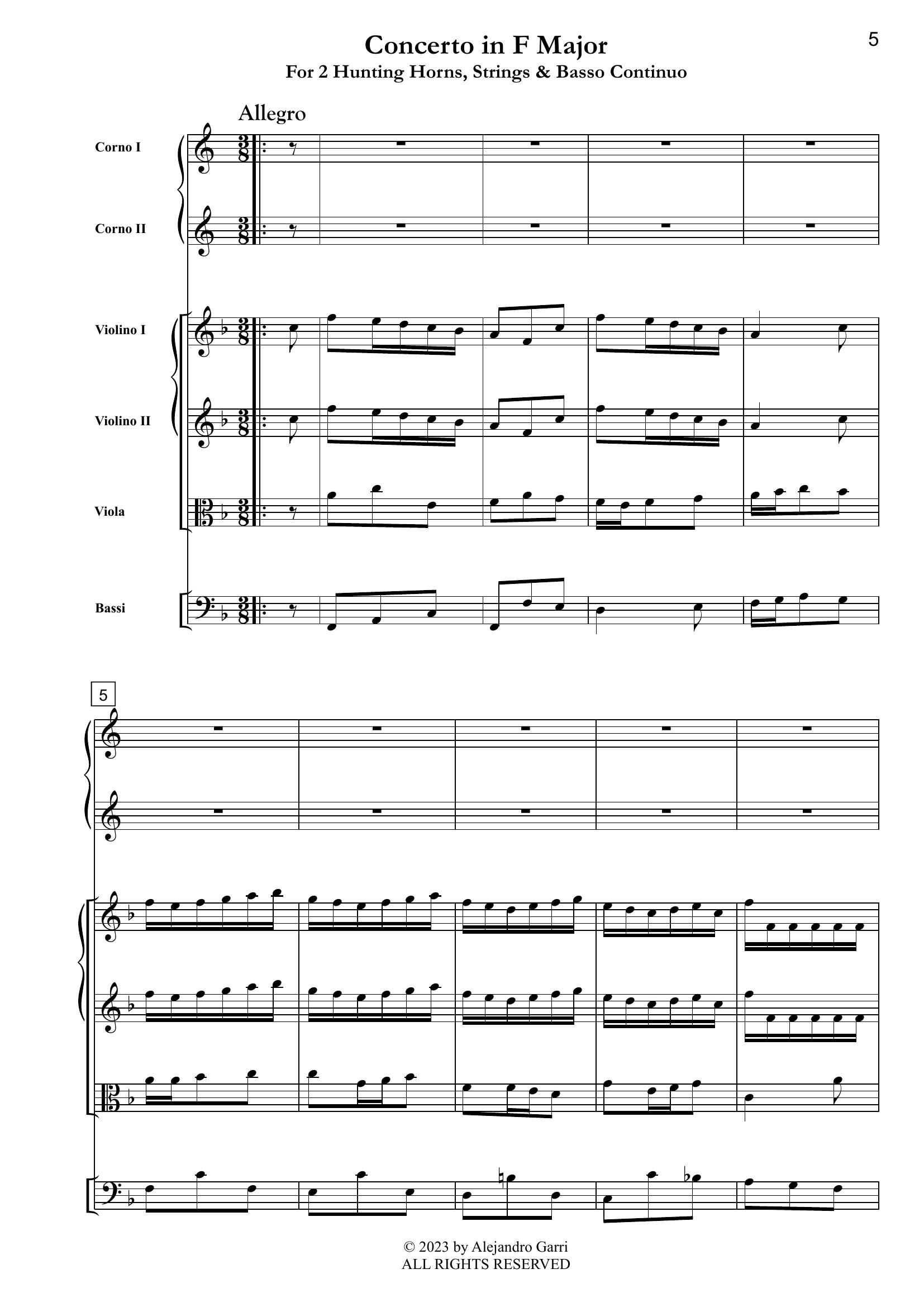 Heinichen, Johann David (1683-1729) Concerto in F Major (SeiH 255), for 2 Hunting Horns, Strings & Basso Continuo (full score & 6 parts)