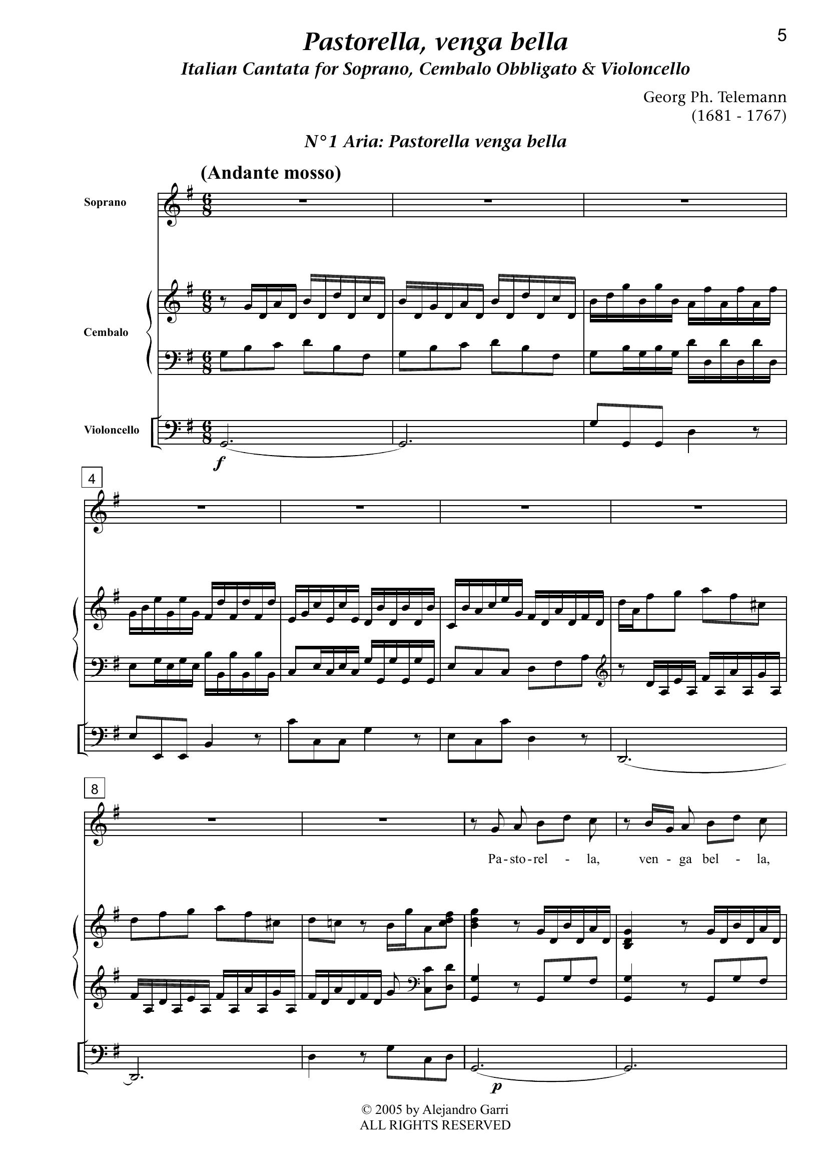 Handel, George F. (1685-1759) Dietro l’orme fugaci del guerrier (Armida abbandonata, HWV 105), Cantata for Soprano, 2 Violins & Basso Continuo (full score & 3 parts)