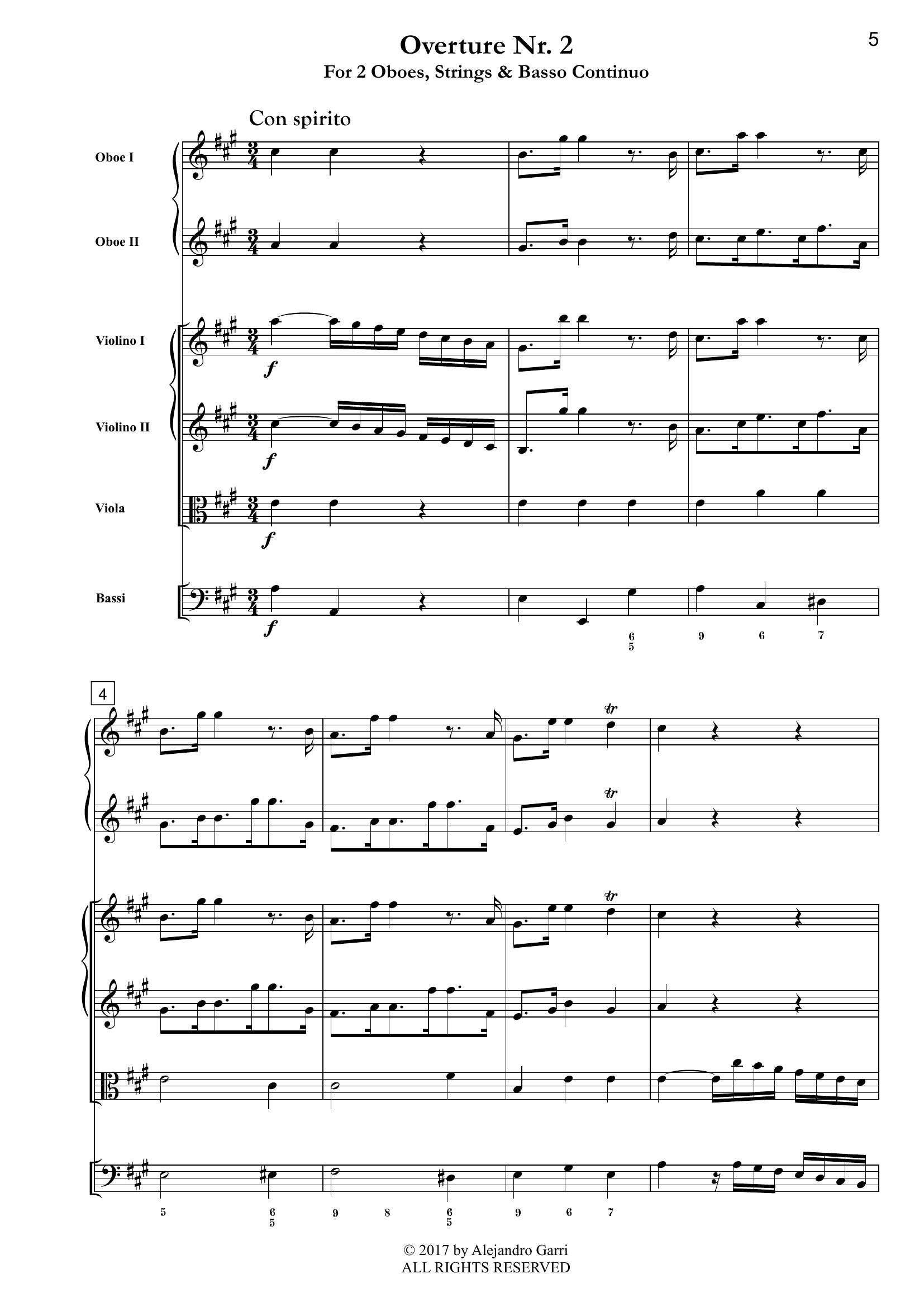 Arne, Thomas A. (1710 – 1778) Eight Overtures, Overture Nr. 2, for 2 Oboes, 2 Transverse Flutes, Strings & Basso Continuo (full score & 6 parts)