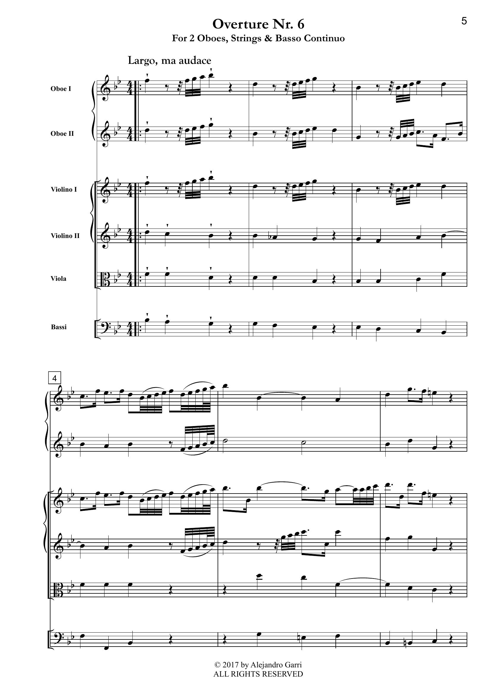 Arne, Thomas A. (1710 – 1778) Eight Overtures, Overture Nr. 6, for 2 Oboes, Strings & Basso Continuo (full score & 6 parts)