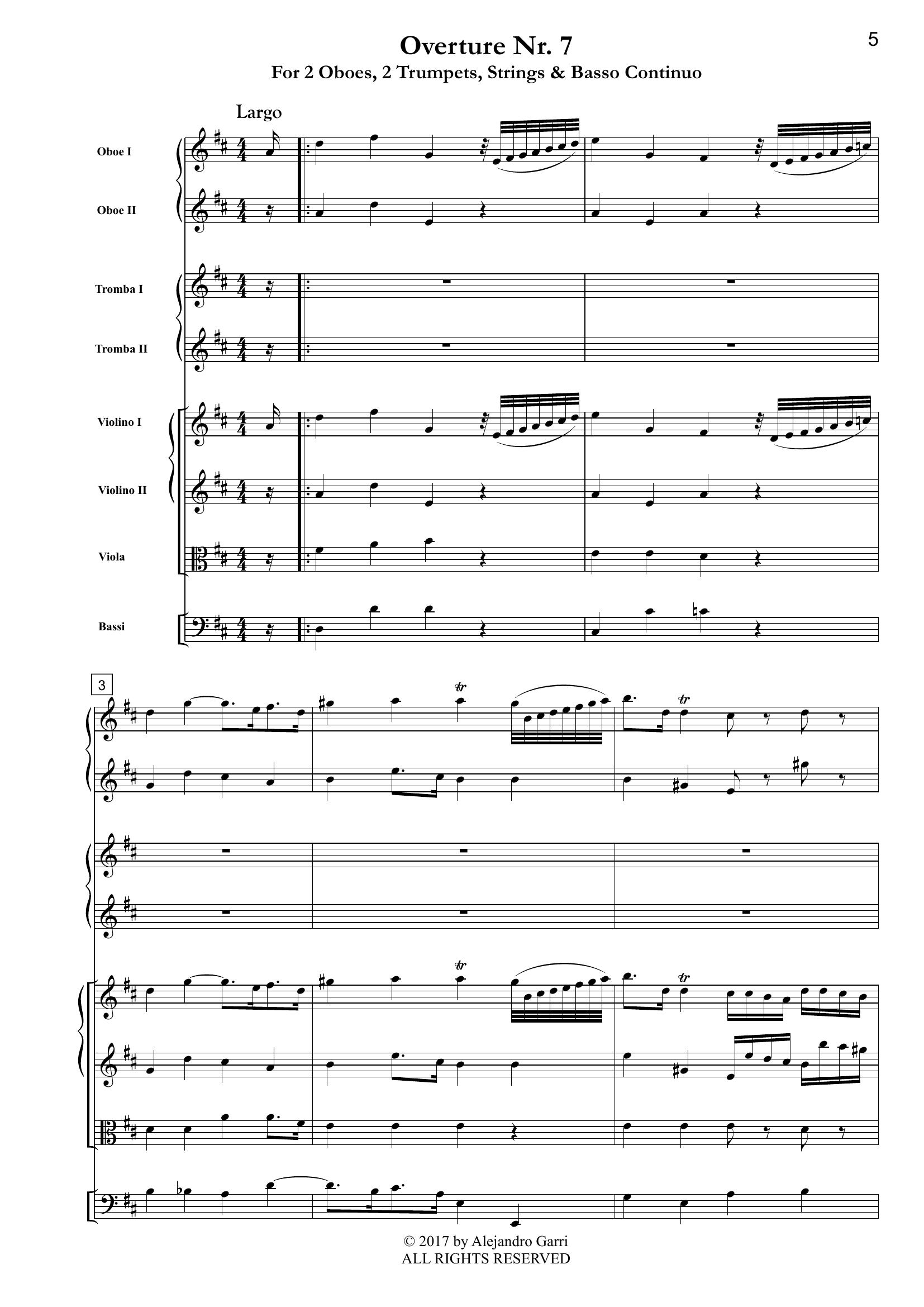 Arne, Thomas A. (1710 – 1778) Eight Overtures, Overture Nr. 7, for 2 Trumpets, 2 Oboes, Strings & Basso Continuo (full score & 8 parts)