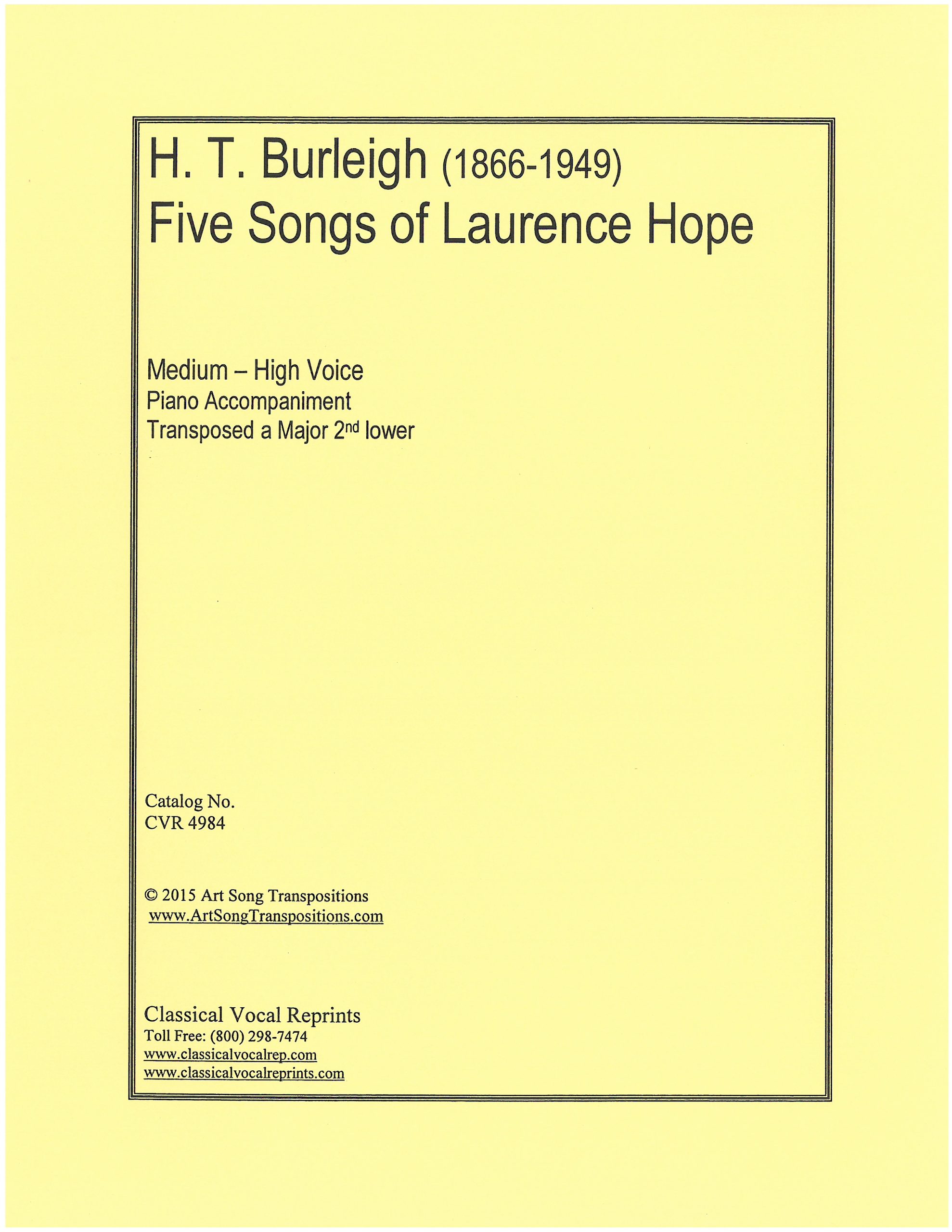 Five Songs of Laurence Hope (Transposed a Major 2nd lower)