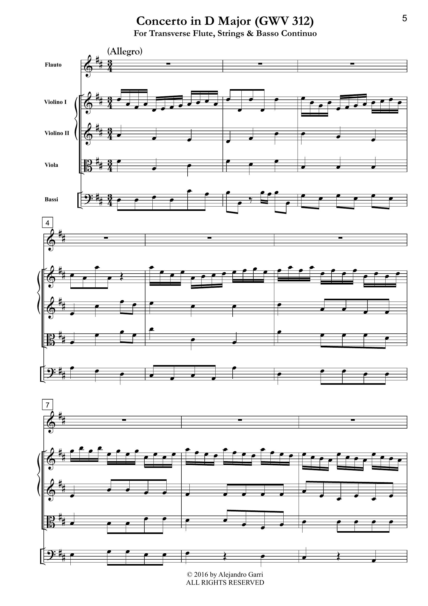Graupner, Christoph (1683 – 1760) Flute Concerto in D Major (GWV 312), for Transverse Flute, Strings & Basso Continuo (full score)