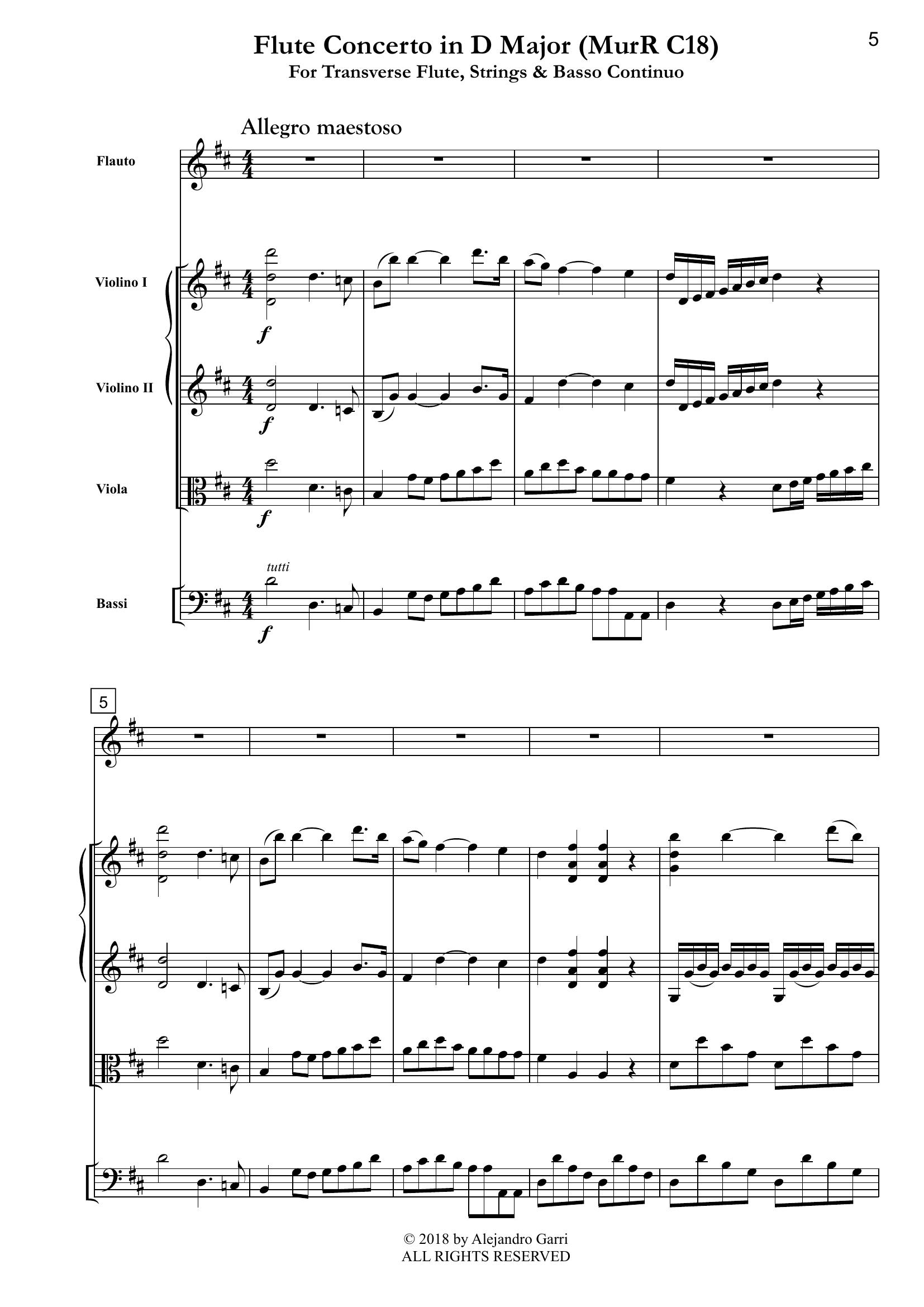 Rosetti, Antonio (ca.1750 – 1792) Flute Concerto in D Major (MurR C18), for Transverse Flute, Strings & Basso Continuo (full score)