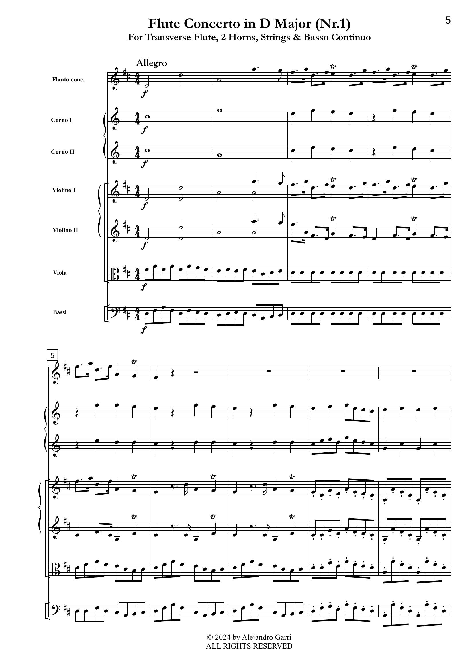 Graf, Friedrich Hartmann (1727 – 1795) Flute Concerto in D Major (Nr.1), for Transverse Flute, 2 Horns, Strings & Basso Continuo (full score)