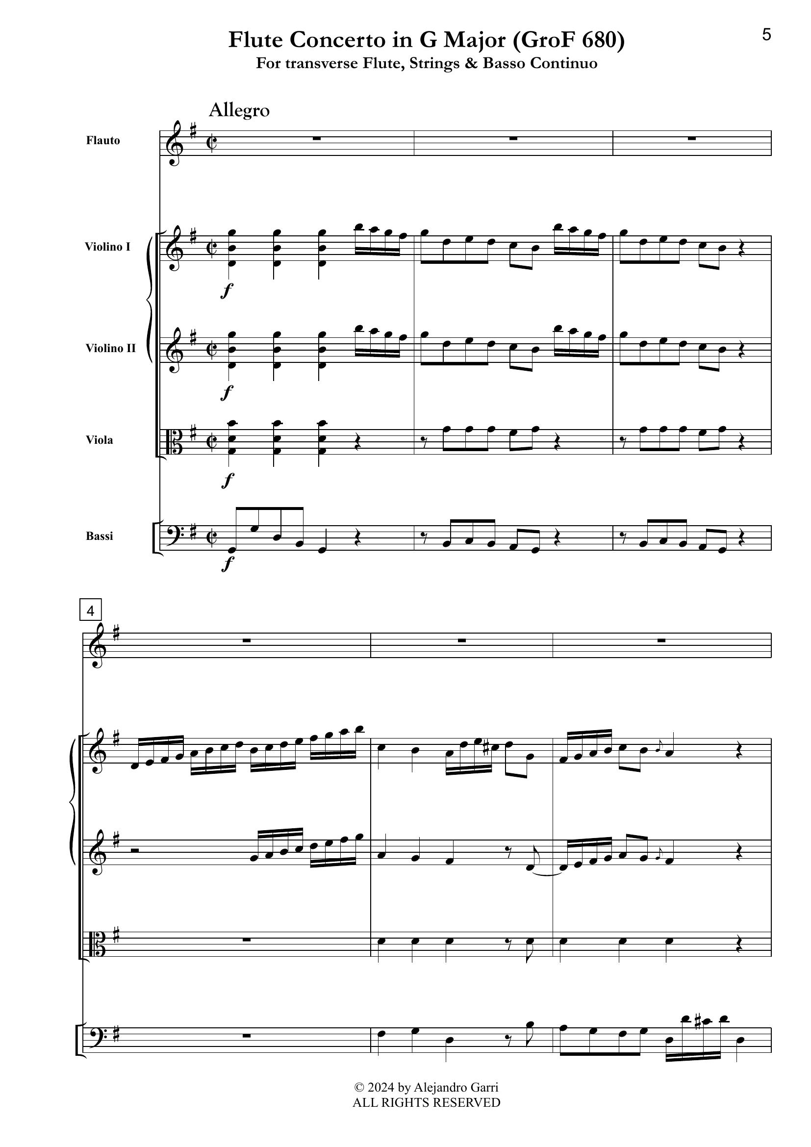 Adam, Johann (ca.1705 – 1779) Flute Concerto in G Major (GroF 680), for Transverse Flute, Strings & Basso Continuo (full score & 5 parts)