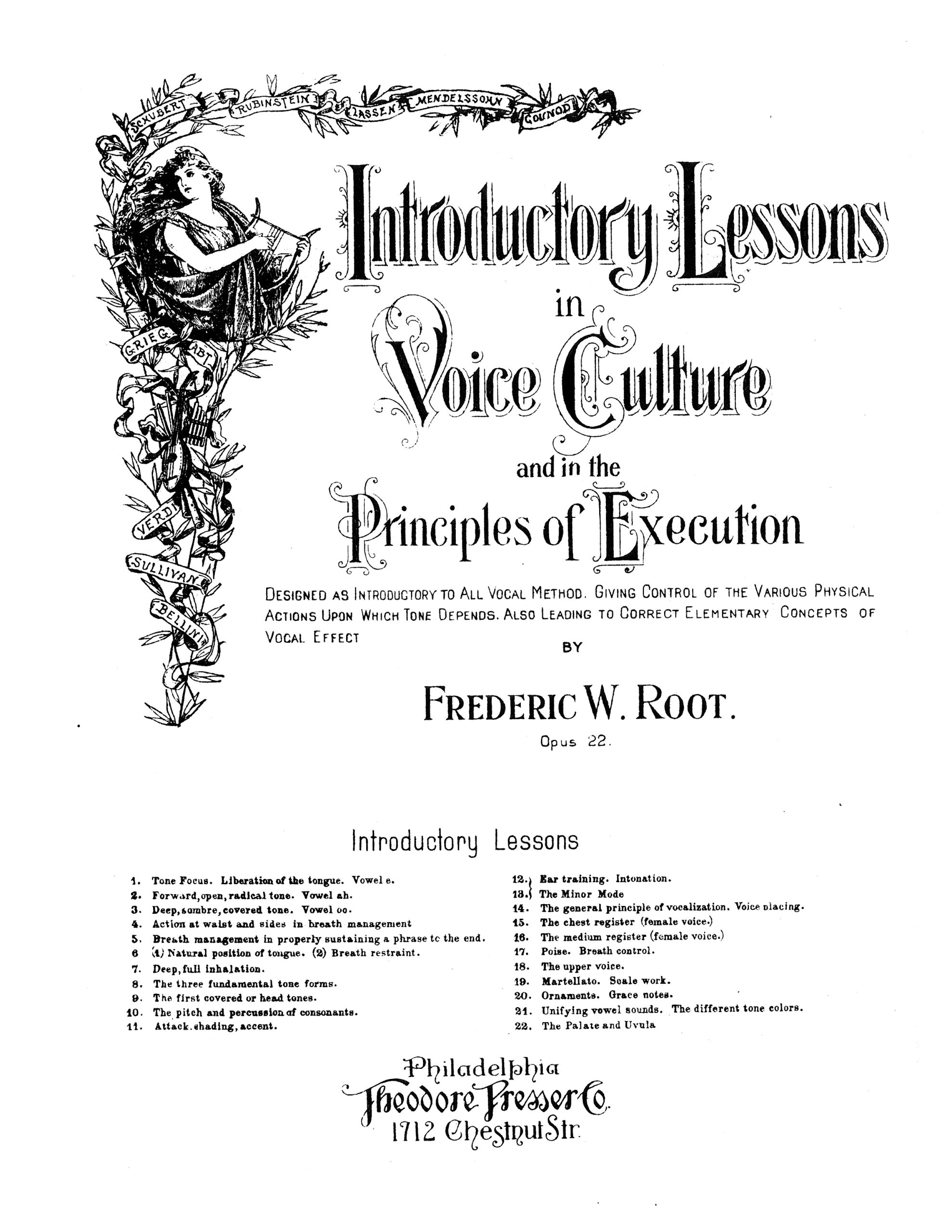 INTRODUCTORY LESSONS IN VOICE CULTURE and in the PRINCIPLES OF EXECUTION.OP.22.(FROM; TECHNIC and ART OF SINGING, Volume 2). Designed as Introductory to all vocal method.Giving Control Various Physical Actions Upon Which Tone Depends.Also Leading to Correct Elementary Concepts Vocal Effect. 41 pages Reprnt of Theodore Presser Co. 1917