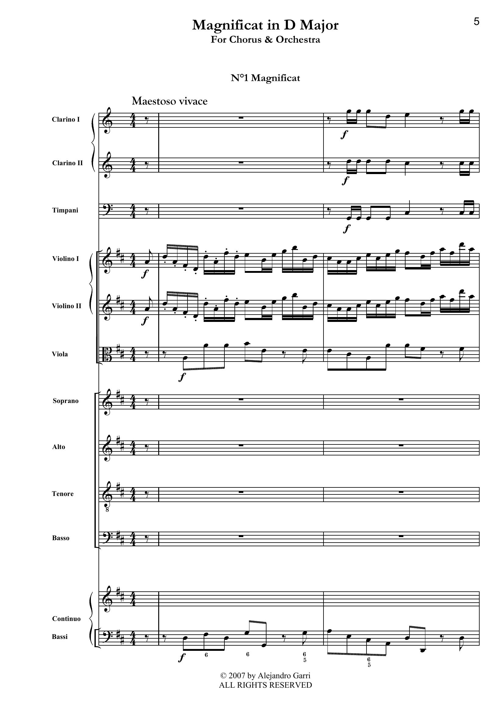 Agricola, Johann Fr. (1720-1774) Magnificat in D Major, for Chorus & Orchestra (full score)