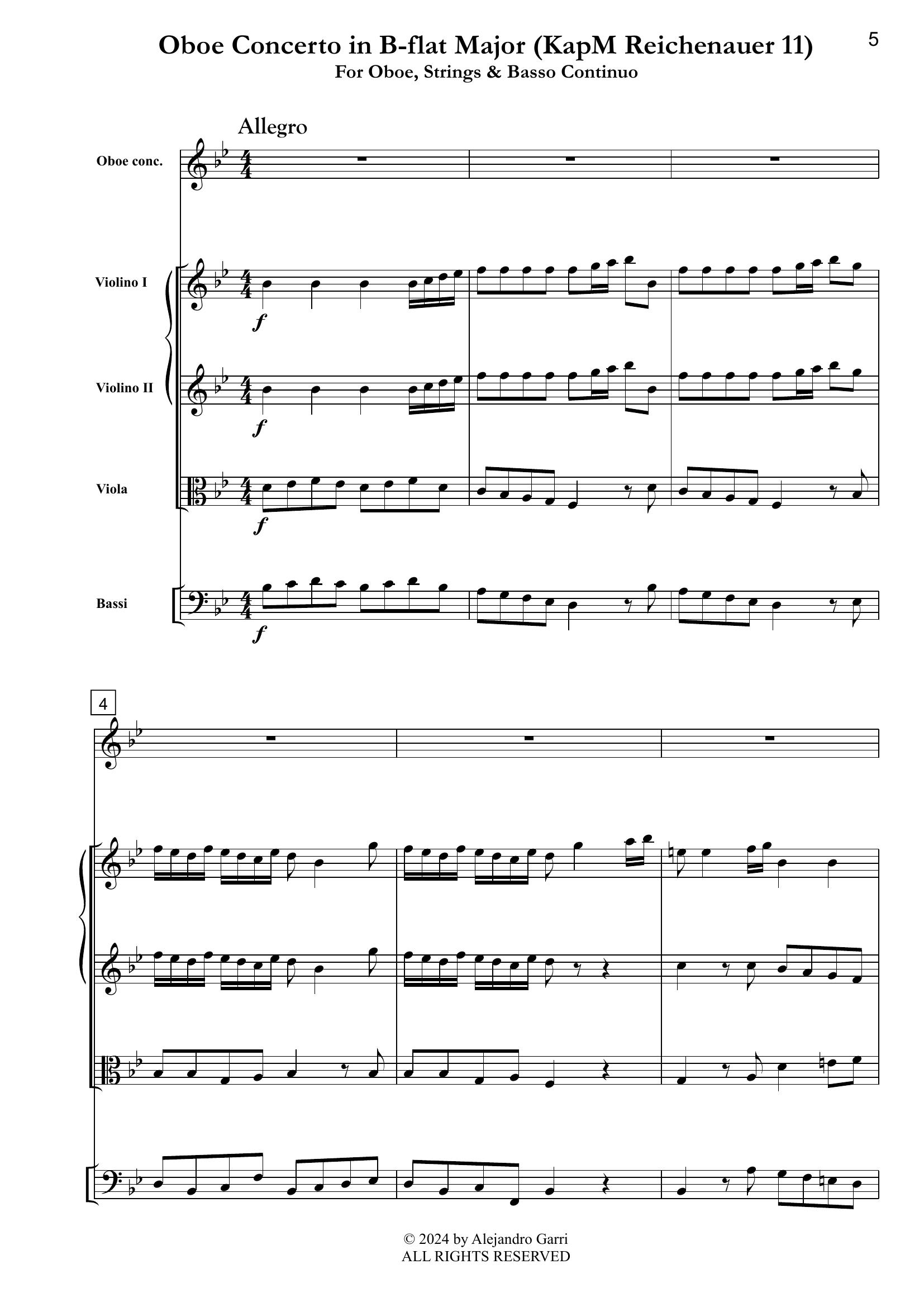 Reichenauer, Johann Anton (ca.1694 – 1730) Oboe Concerto in B-flat Major (KapM Reichenauer 11), for Oboe, Strings & Basso Continuo (full score & 5 parts)