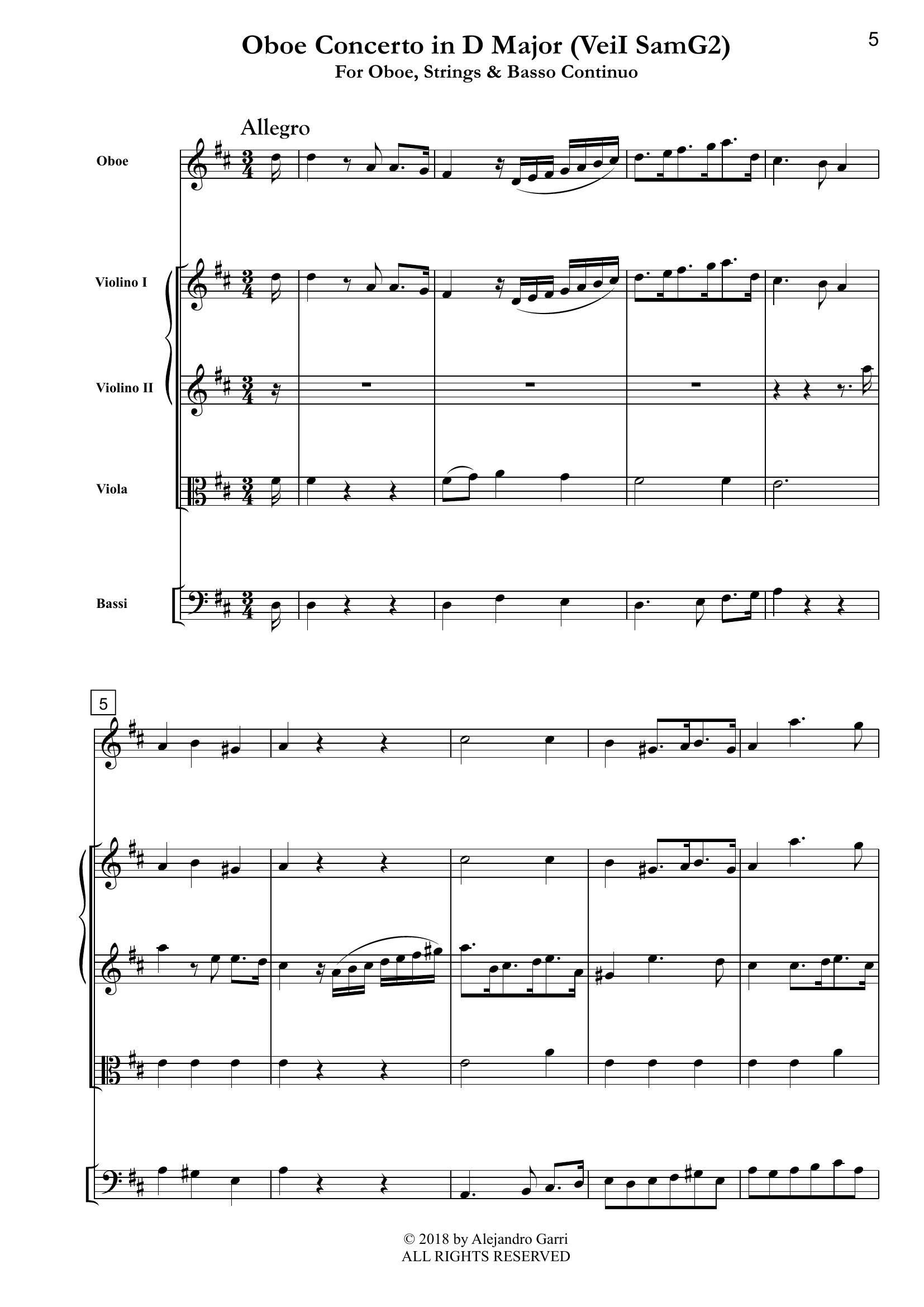 Sammartini, Giuseppe (1695 – 1750) Oboe Concerto in D Major (VeiI SamG2), for Oboe, Strings & Basso Continuo (full score)