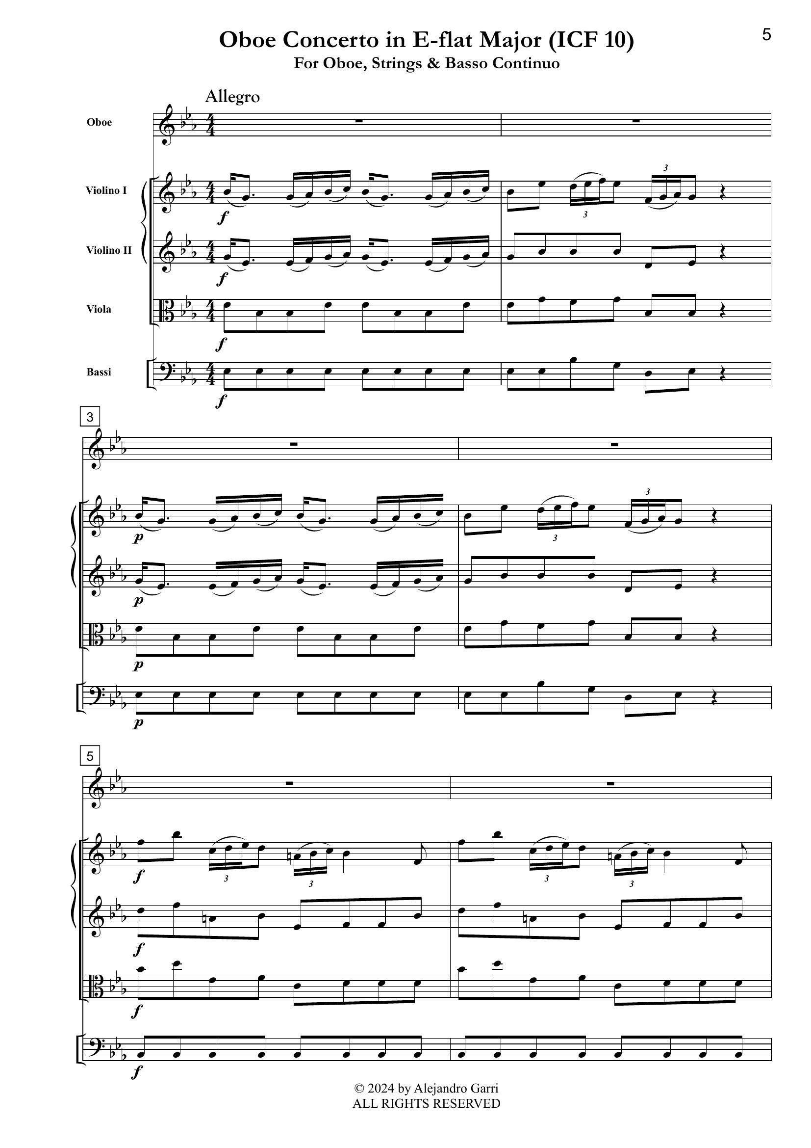 Förster, Christoph H. (1693 – 1745) Oboe Concerto in E-flat Major (ICF 10), for Oboe, Strings & Basso Continuo (full score & 5 parts)