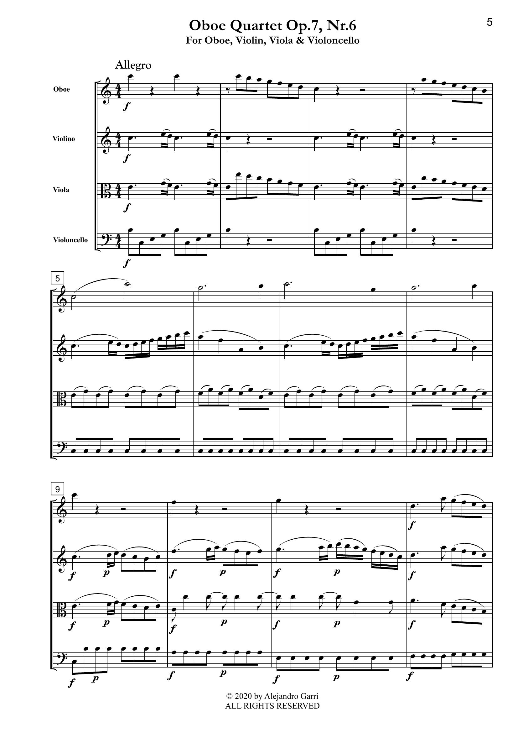 Vanhal, Johann Baptist (1739 – 1813) Oboe Quartet (Op.7, Nr.6), for Oboe, Violin, Viola & Violoncello (full score & 4 parts)