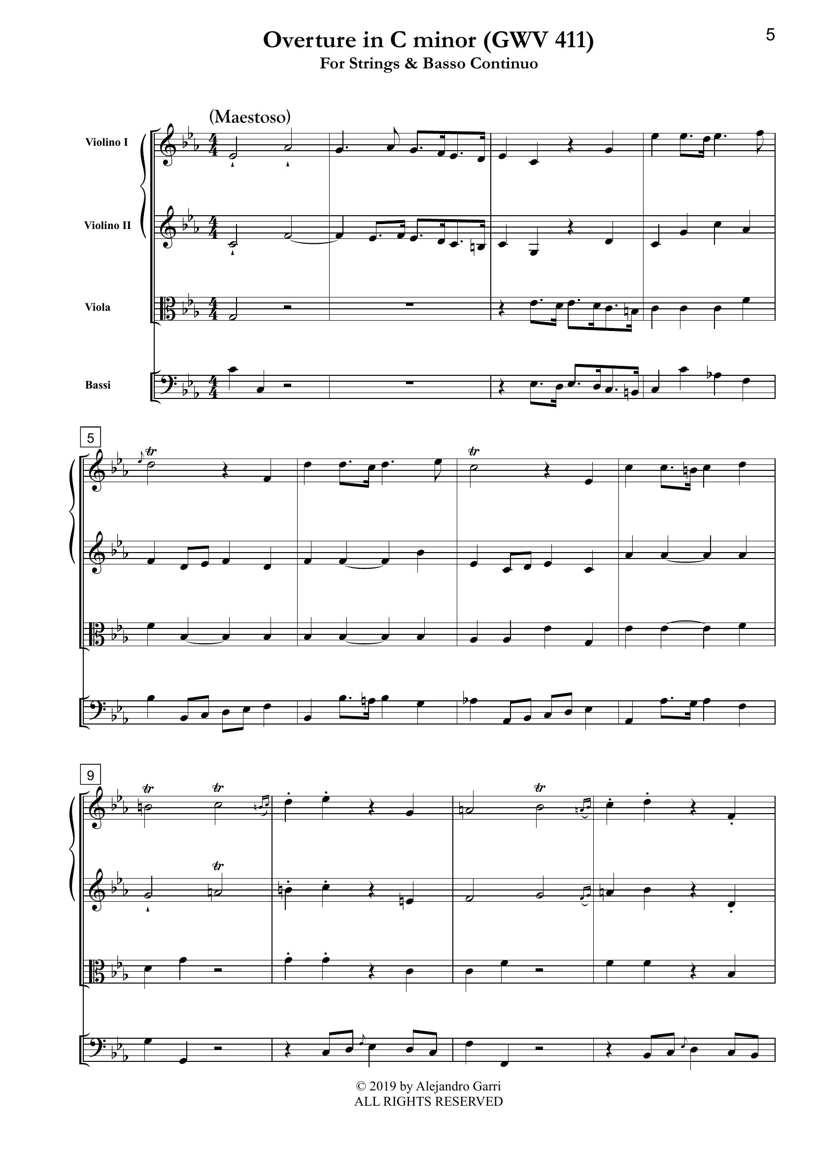 Graupner, Christoph (1683-1760) Overture in C minor (GWV 411), for Strings & Basso Continuo (full score & 4 parts)