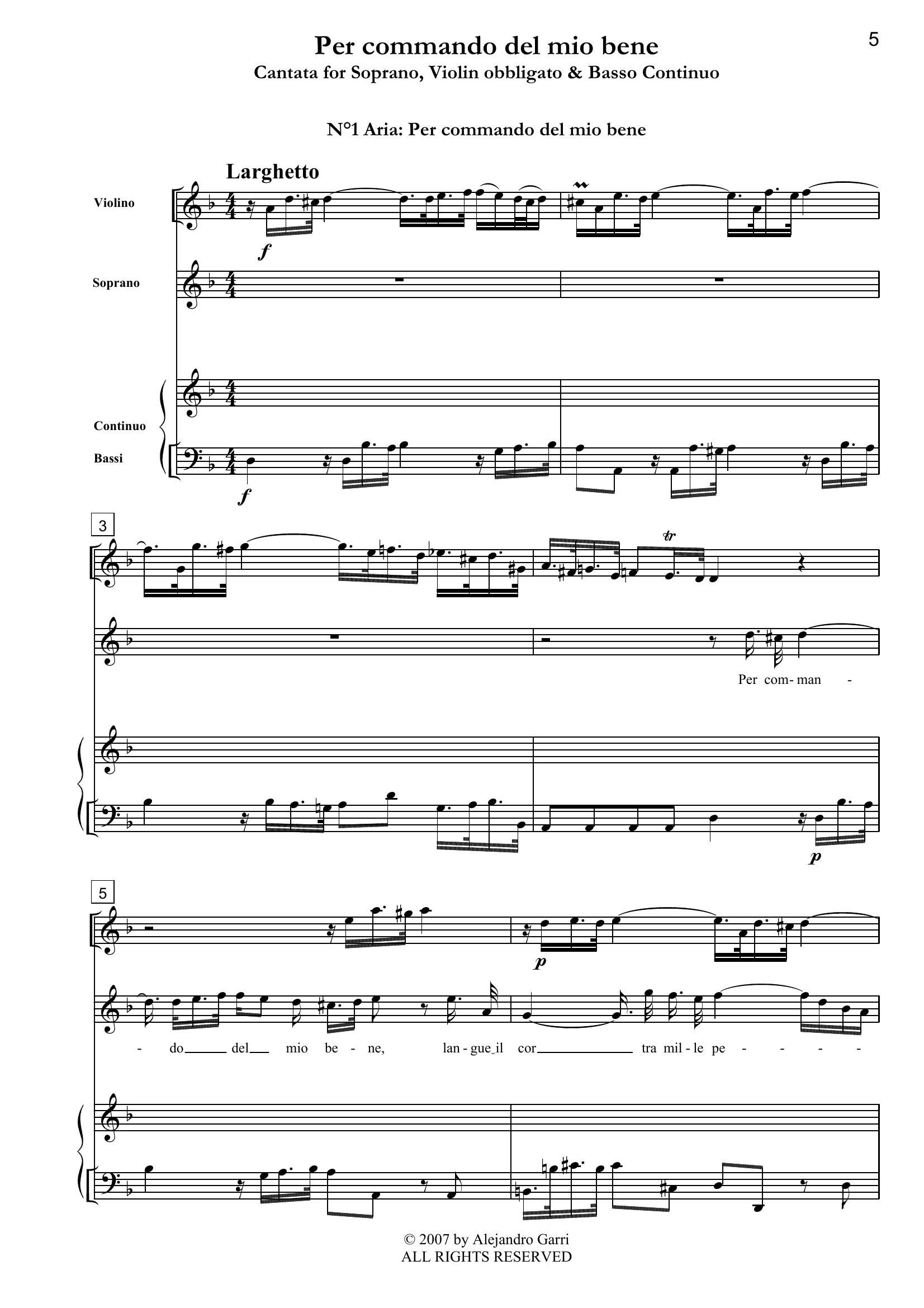 Caldara, Antonio (1671?-1736) Per commando del mio bene, Cantata for Soprano, Violin Obbligato & Basso Continuo (full score & 2 parts)