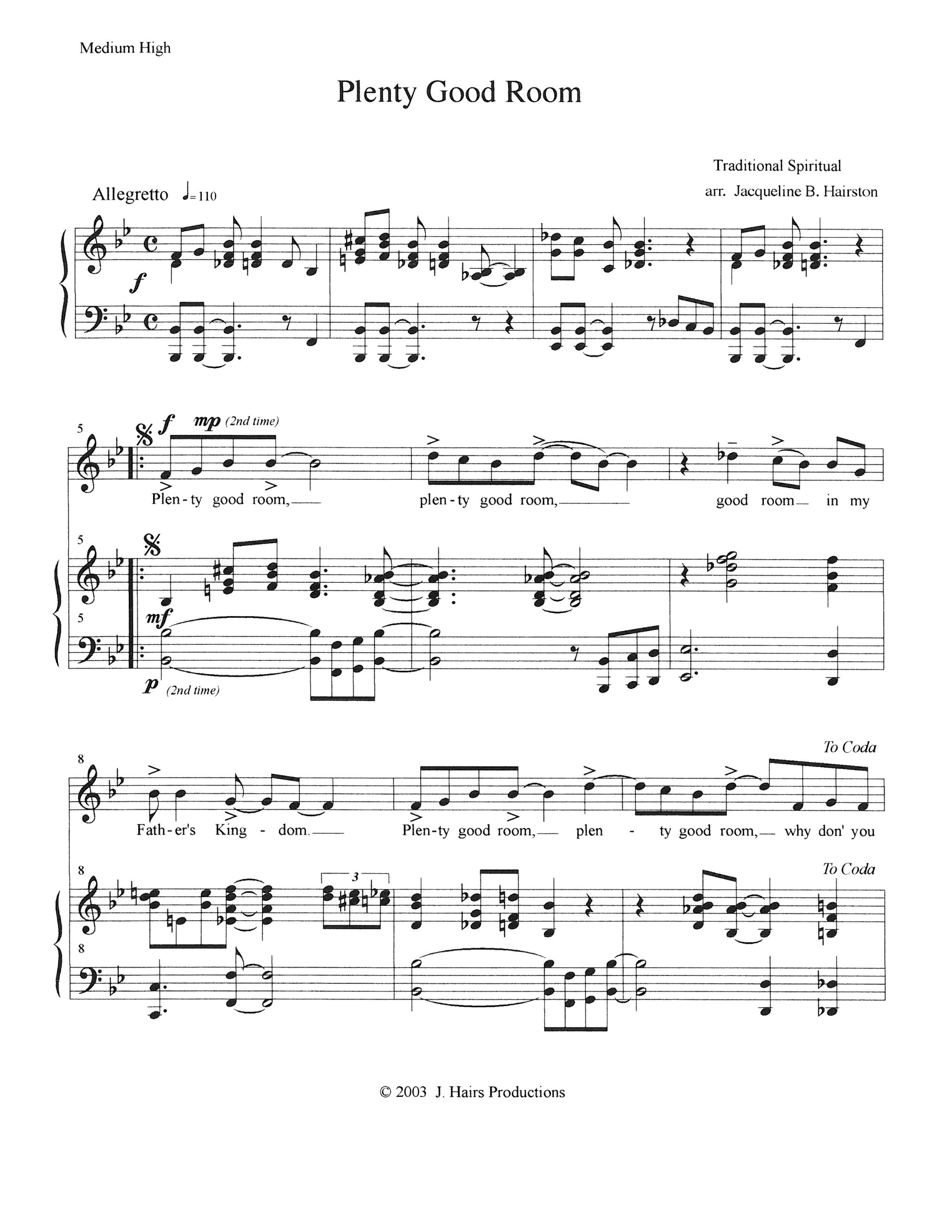 You're viewing: Plenty Good Room (Hairston) (Bb)$4.95