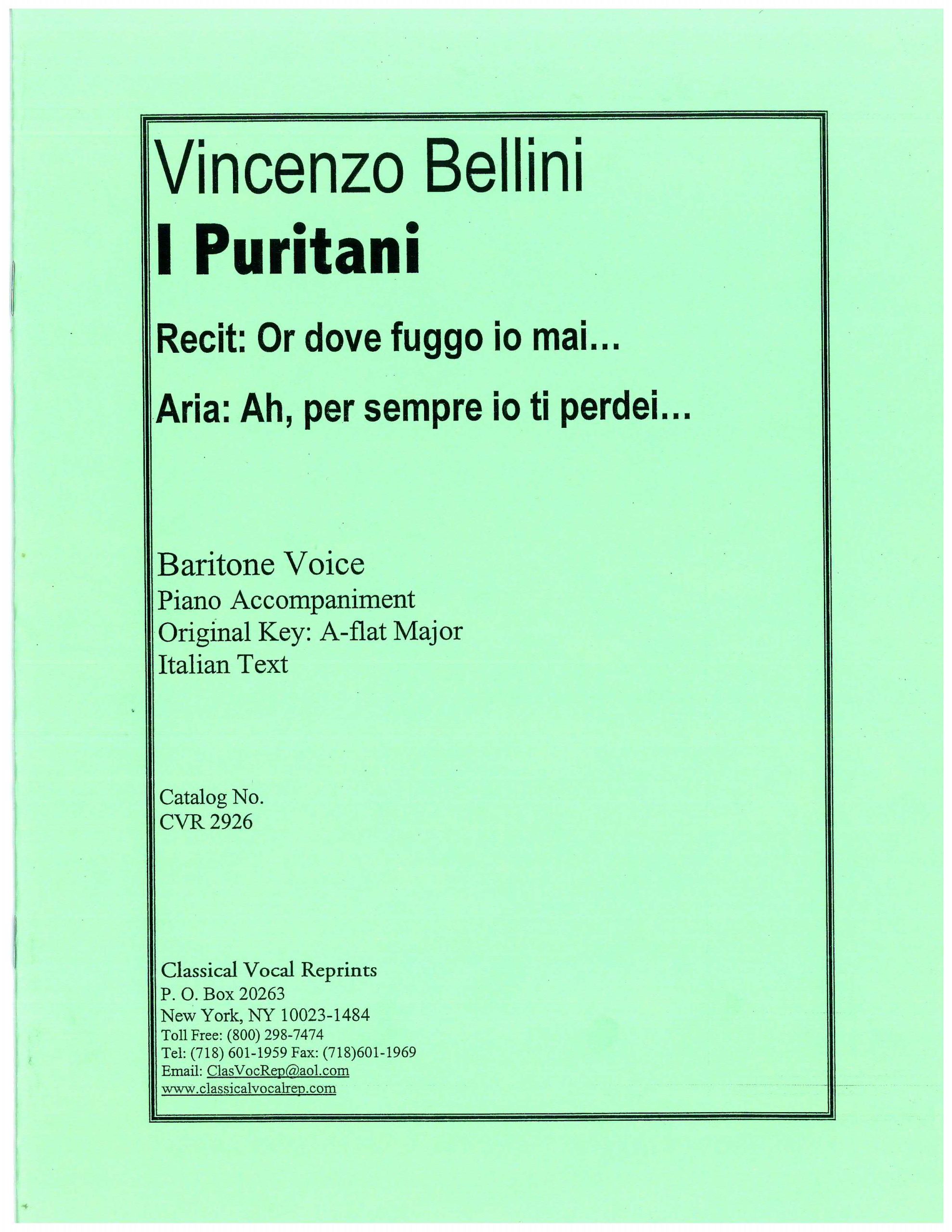 You're viewing: Puritani Ah per sempre io ti perdei – with Recit: O dove fuggo io mai.$4.95