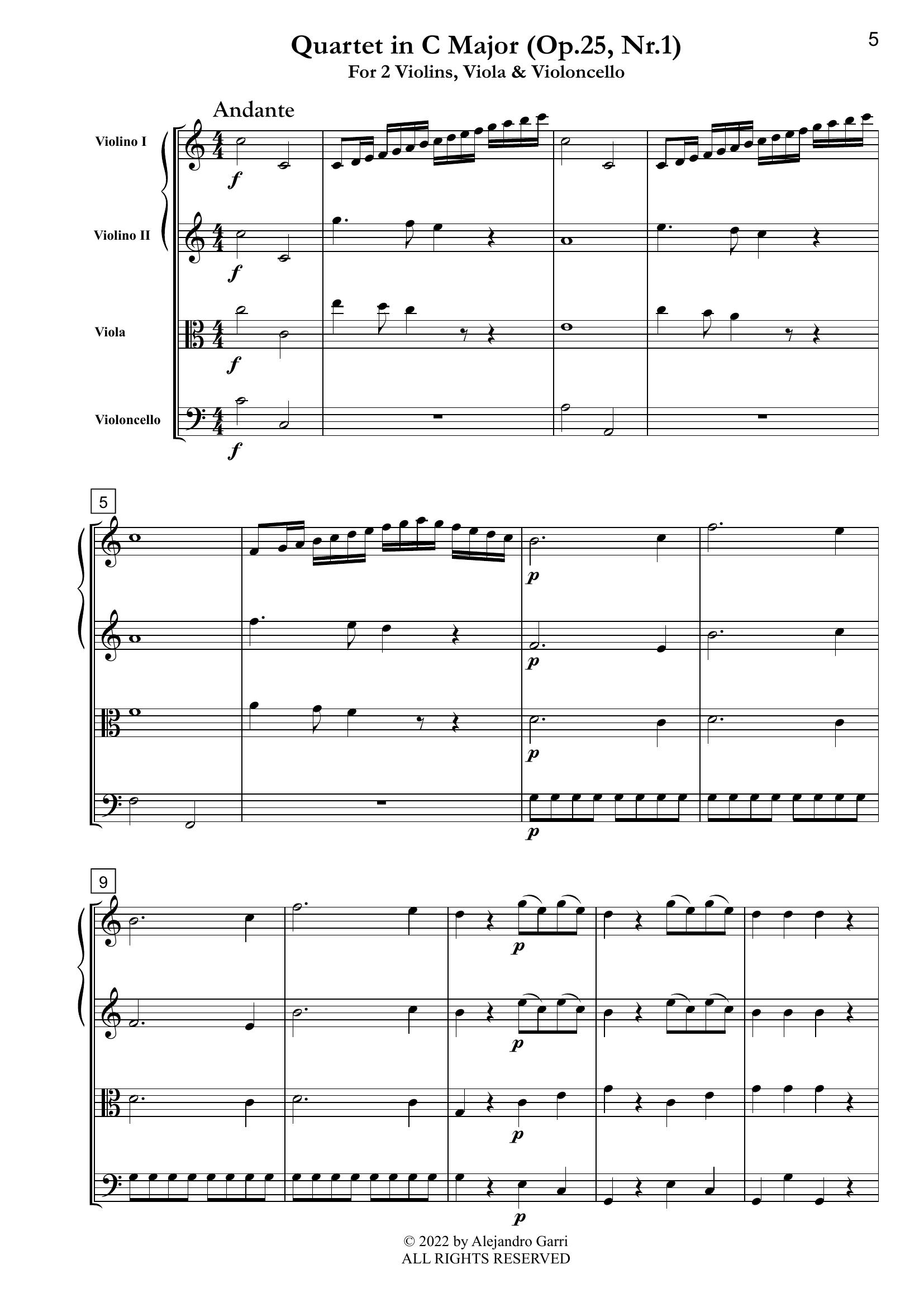 Giardini, Felice (1716 – 1796) Quartet in C Major (Op.25, Nr.1), for 2 Violins, Viola & Violoncello (full score & 4 parts)