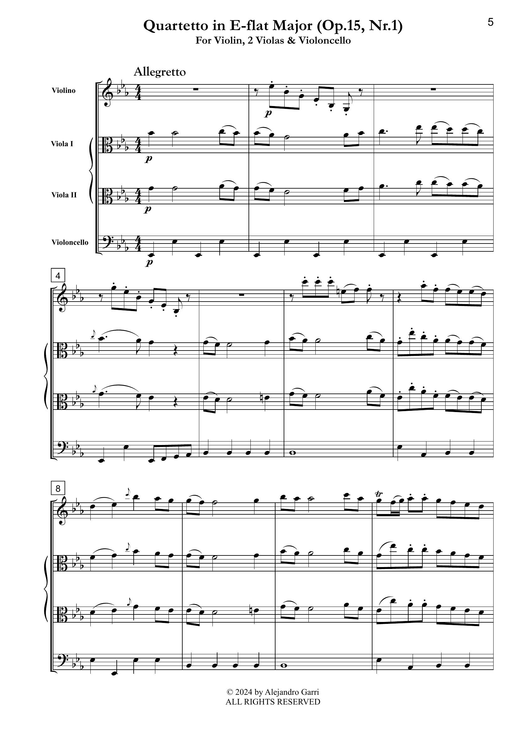 Stamitz, Carl Philipp (1745 – 1801) Quartet in E-flat Major (Op.15, Nr.1), for Strings (full score & 4 parts)