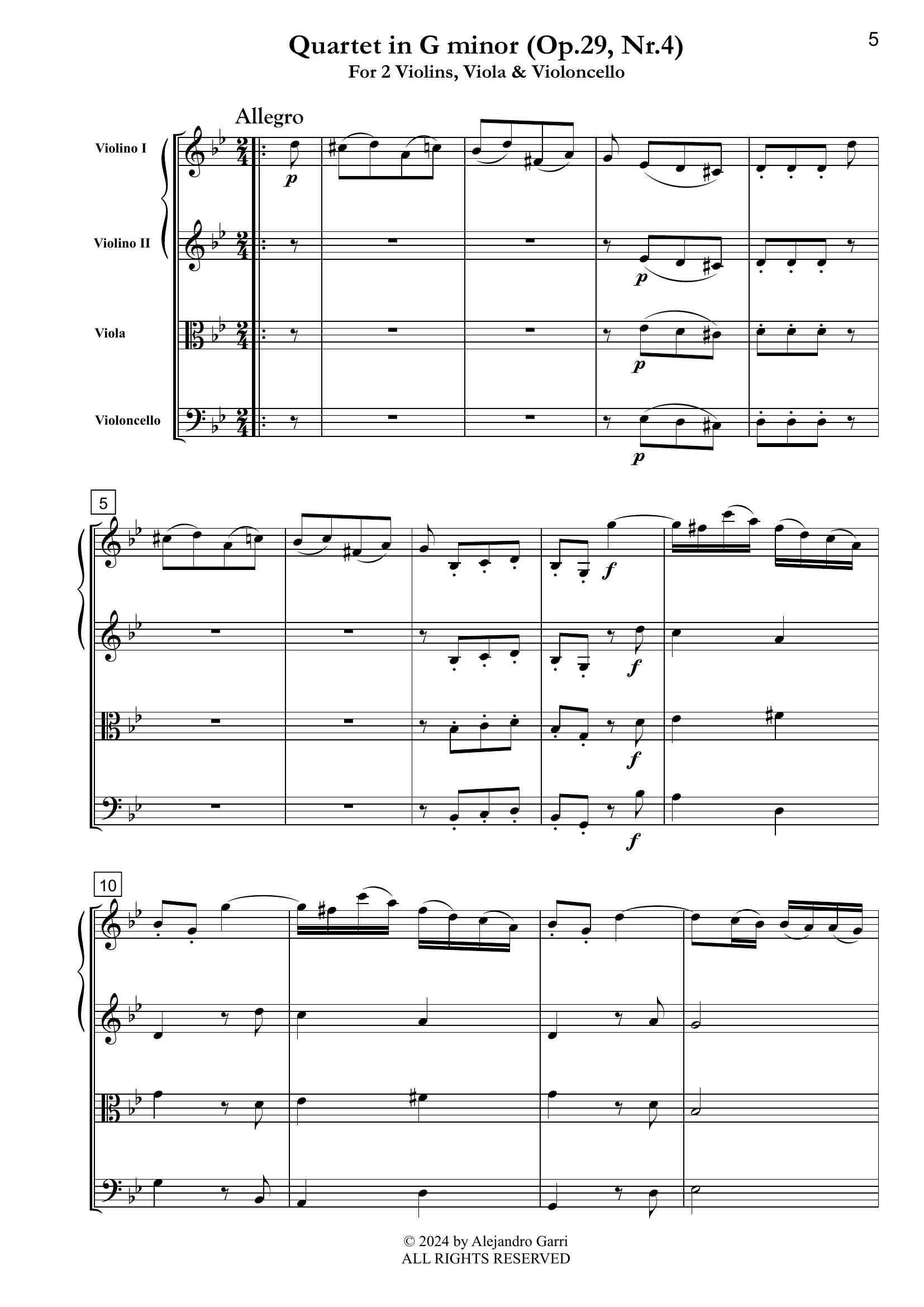 Giardini, Felice (1716 – 1796) Quartet in G minor (Op.29, Nr.4), for 2 Violins, Viola & Violoncello (full score & 4 parts)