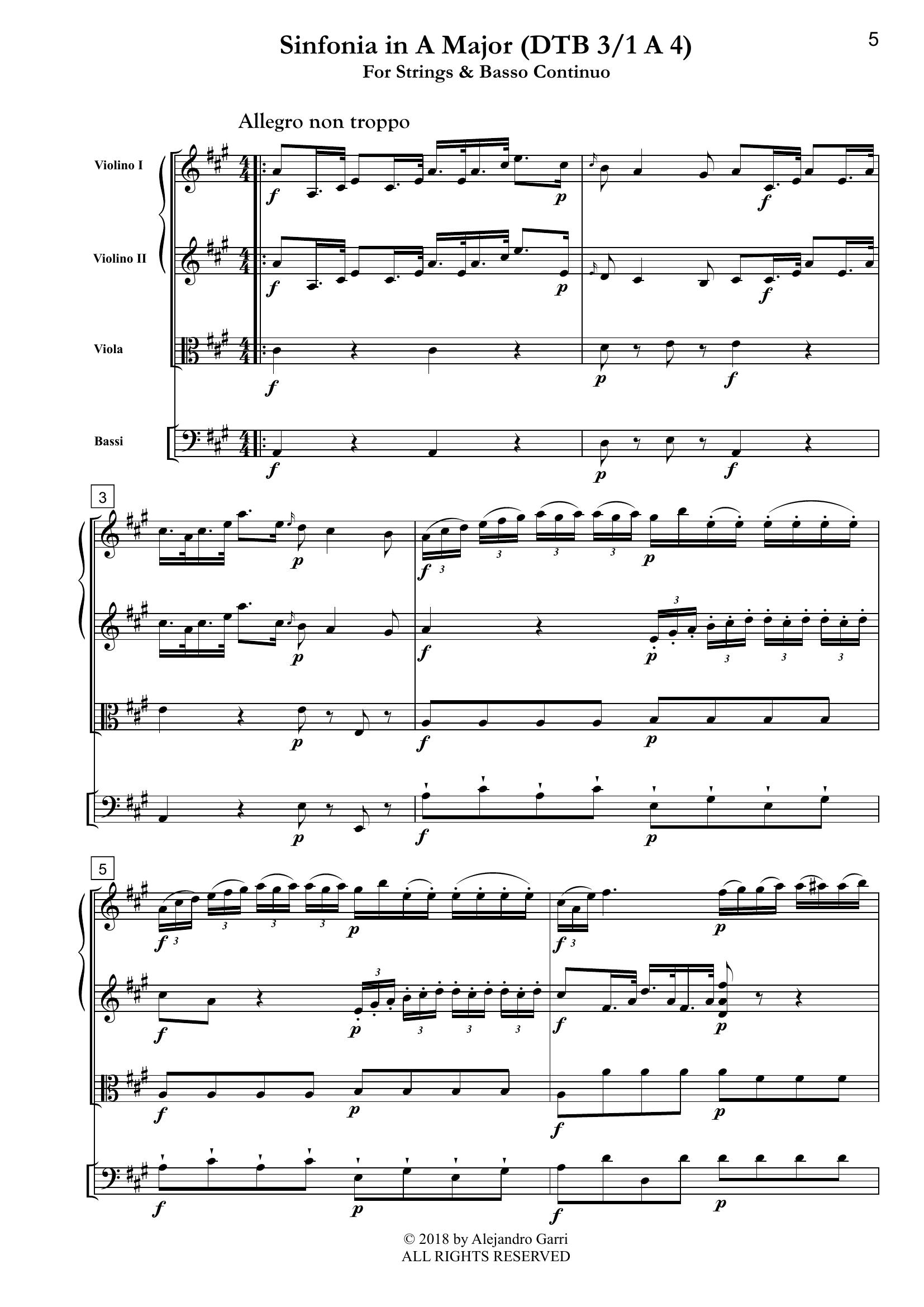Holzbauer, Ignaz (1711 – 1783) Sinfonia in A Major (DTB 3/1 A 4), for Strings & Basso Continuo (full score & 4 parts)