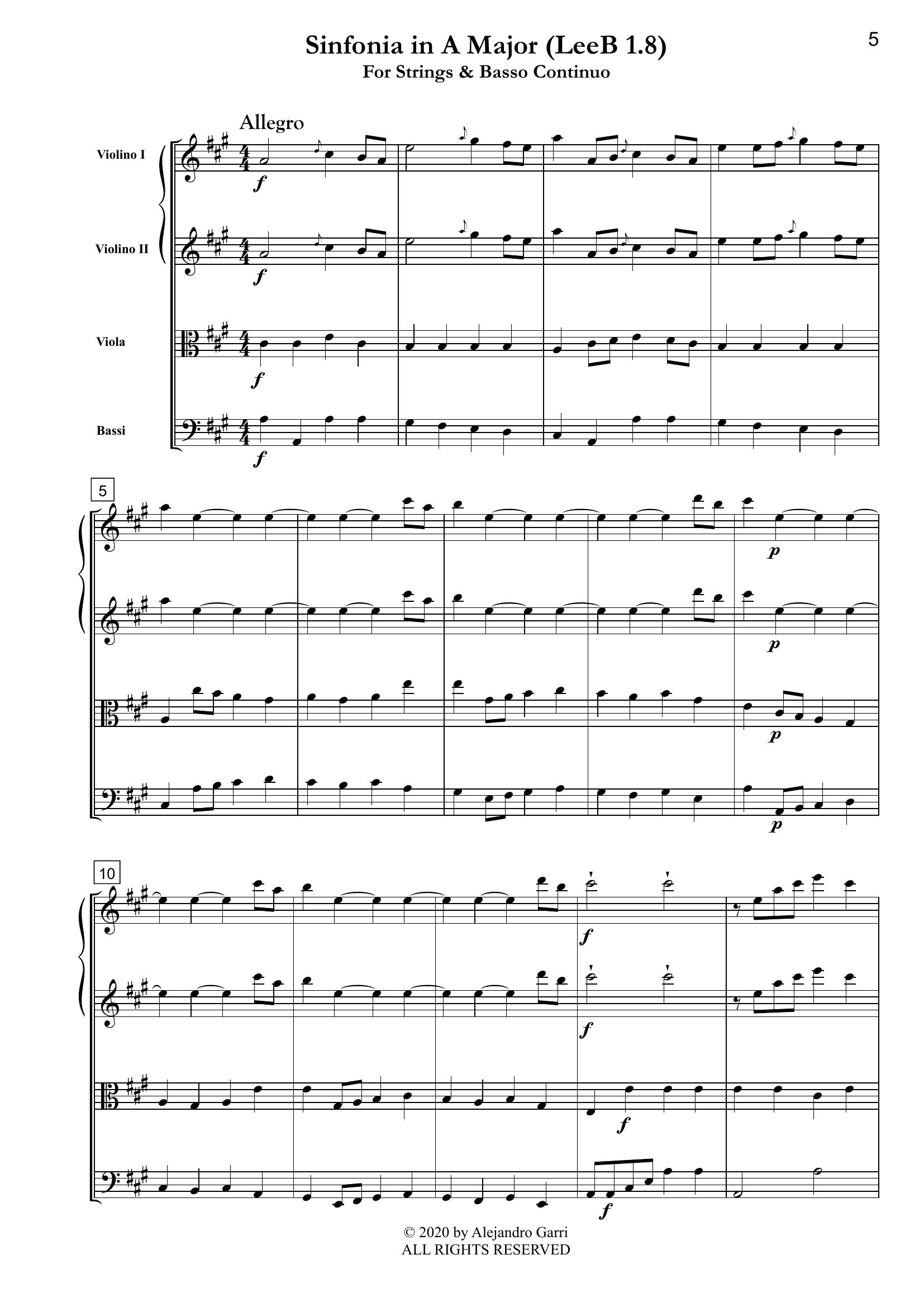 Benda, Franz (1709 – 1786) Sinfonia in A Major (LeeB 1.8), for Strings & Basso Continuo (full score & 4 parts)