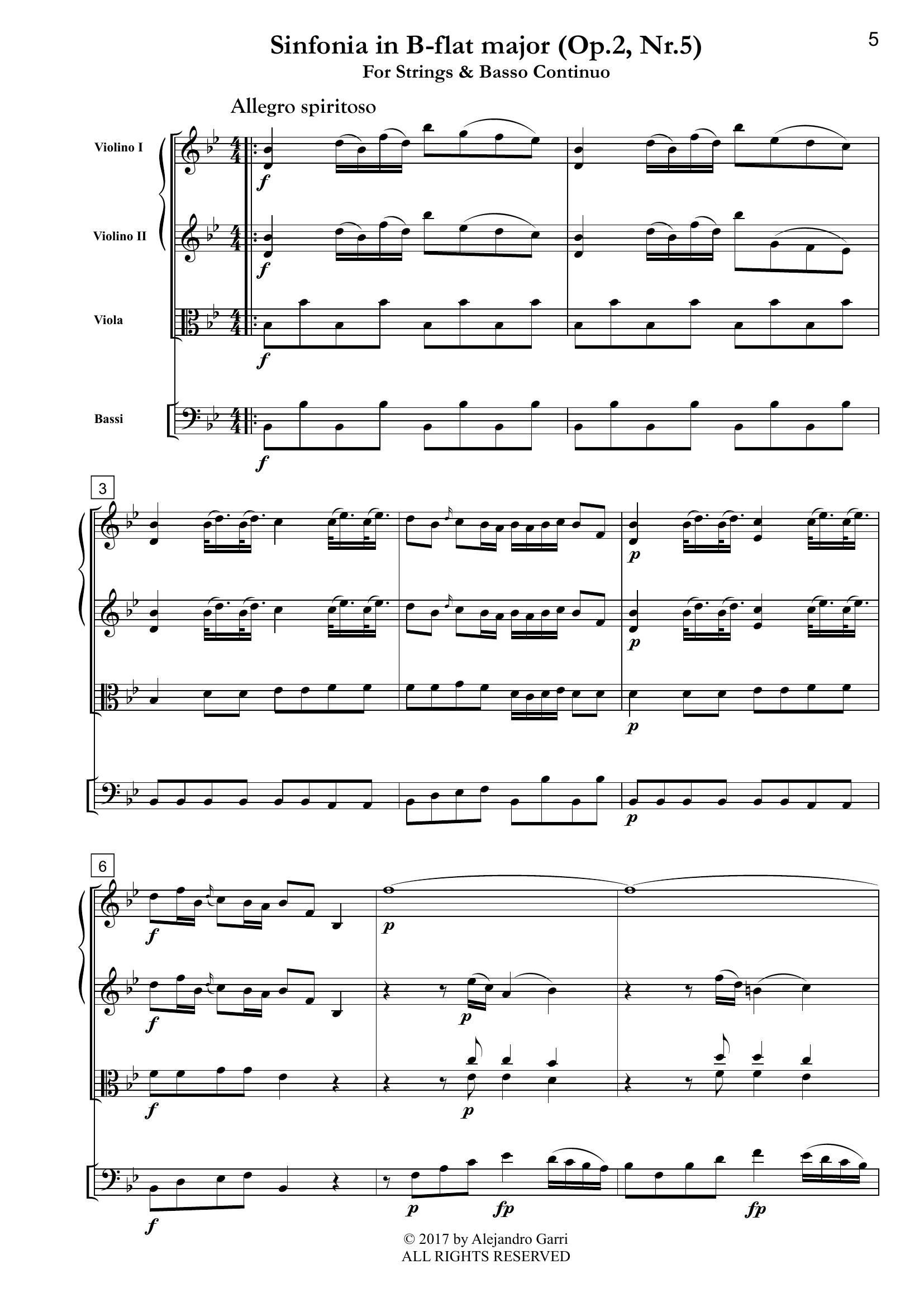Holzbauer, Ignaz (1711 – 1783) Sinfonia in B-flat Major, Op.2, Nr.5, for Strings & Basso Continuo (full score & 4 parts)