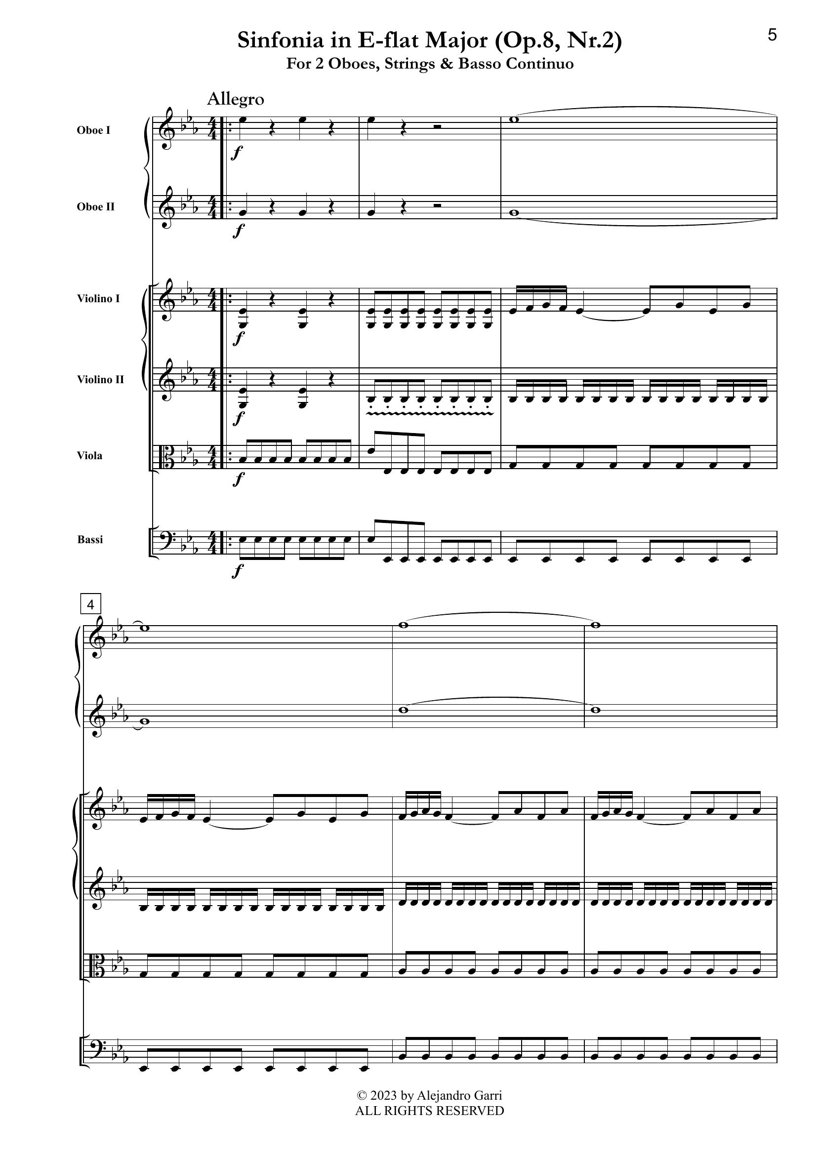 Stamitz, Johann (1717-1757) Sinfonia in E-flat Major (Op.8, Nr.2), for 2 Oboes & Strings (full score & 6 parts)