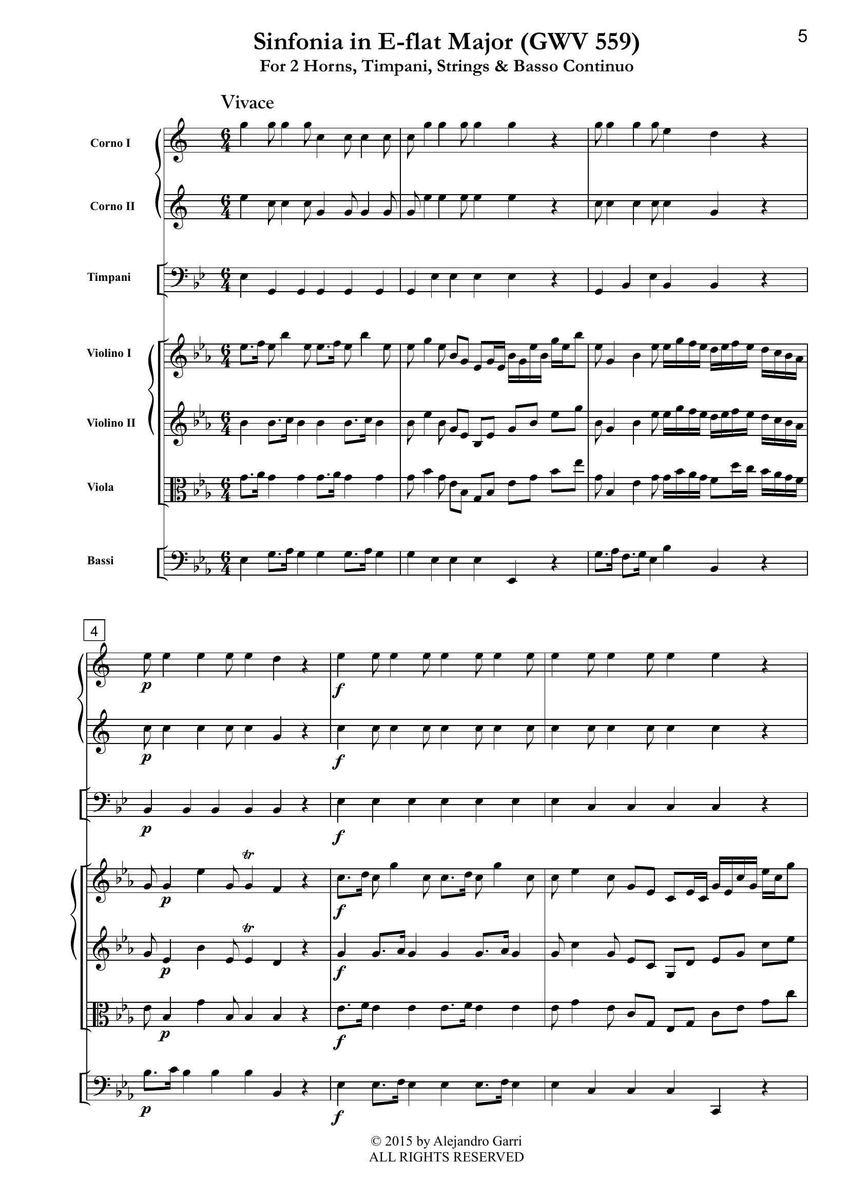 Graupner, Christoph (1683 – 1760) Sinfonia in E-flat Major(GWV 559), for 2 Horns, Timpani, Strings & Basso Continuo (full score)