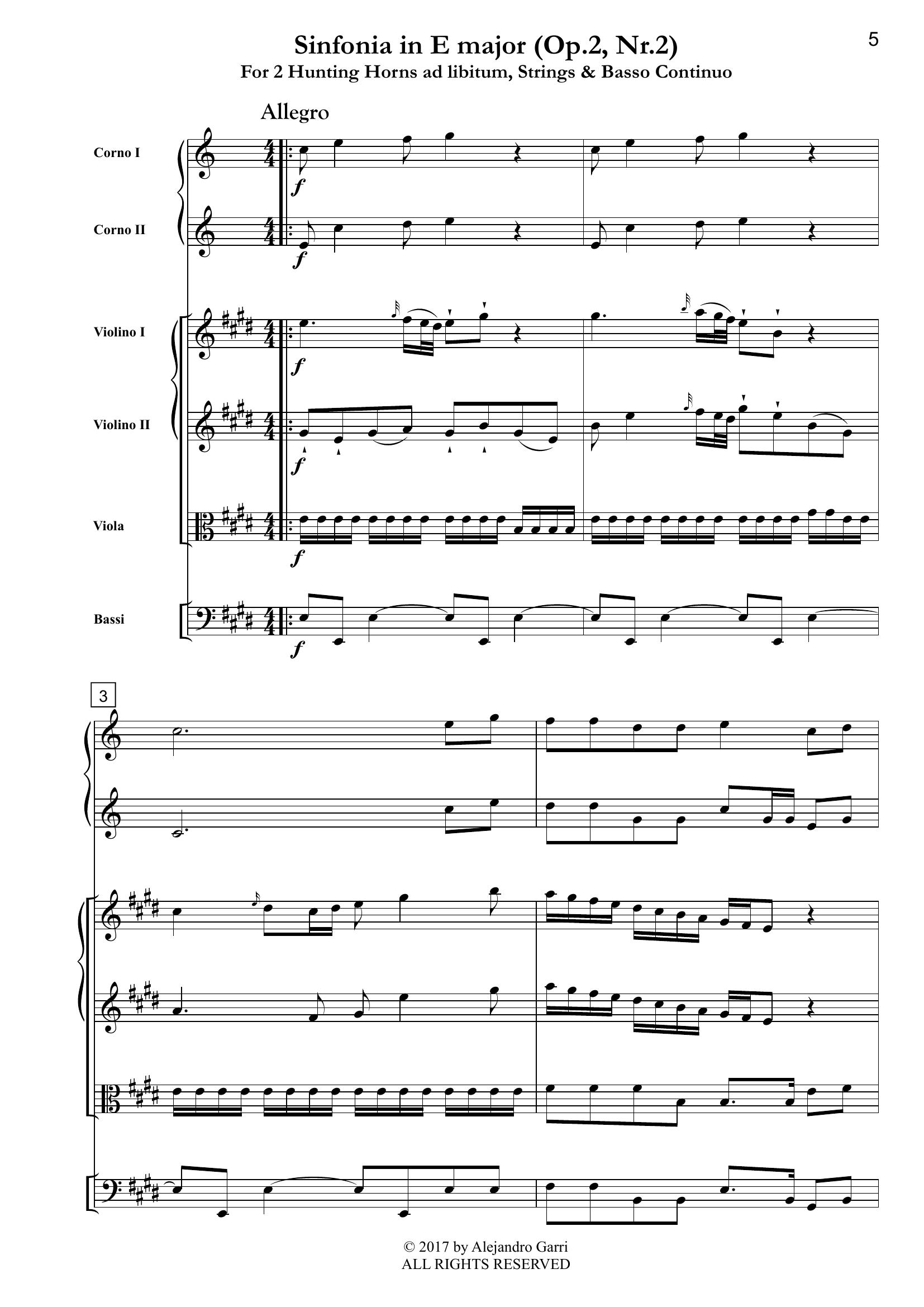 Holzbauer, Ignaz (1711 – 1783) Sinfonia in E Major, Op.2, Nr.2, for 2 Hunting Horns ad libitum, Strings & Basso Continuo (full score)