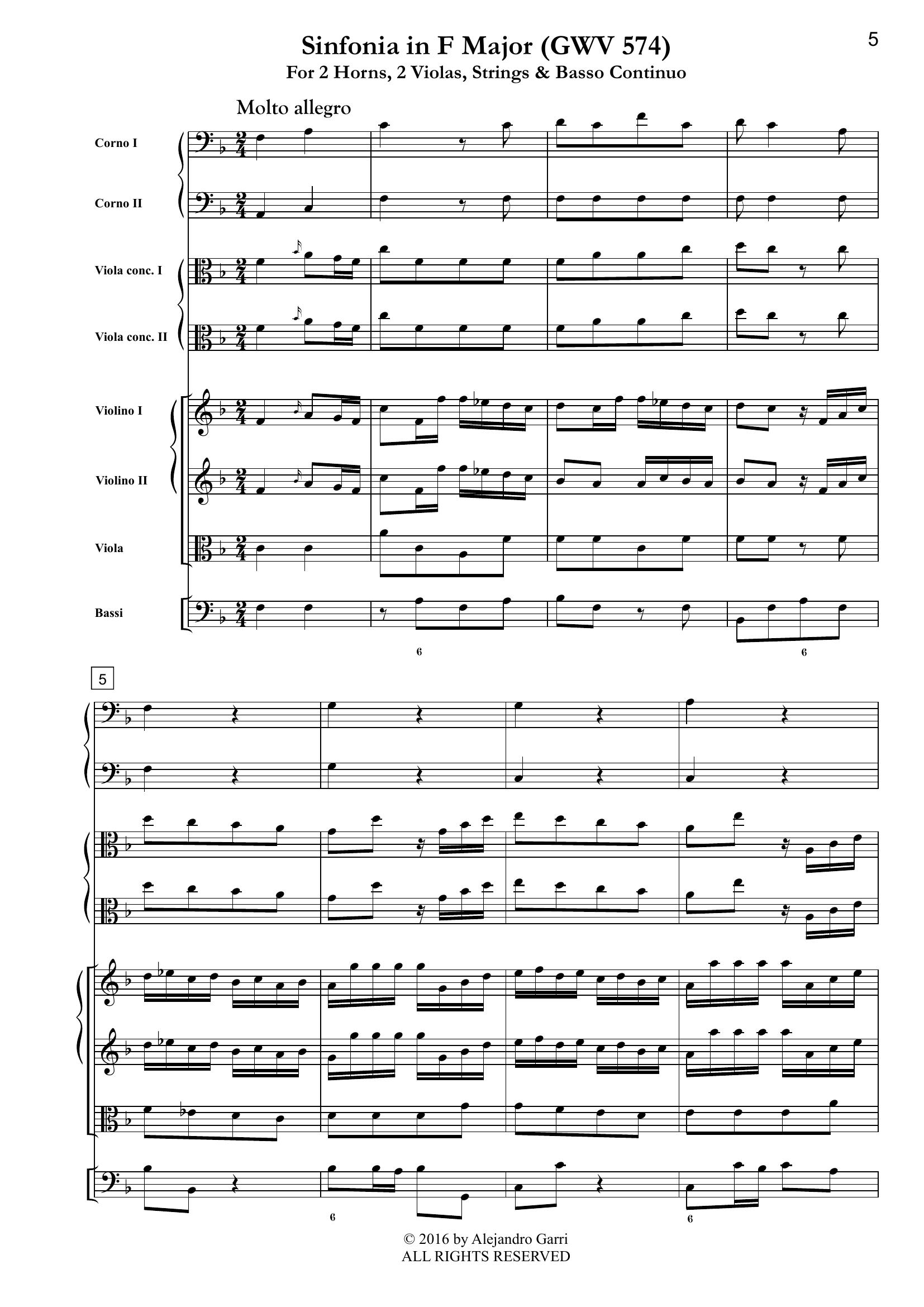 Graupner, Christoph (1683 – 1760) Sinfonia in F Major (GWV 574), for 2 Horns, 2 Violas, Strings & Basso Continuo (full score)