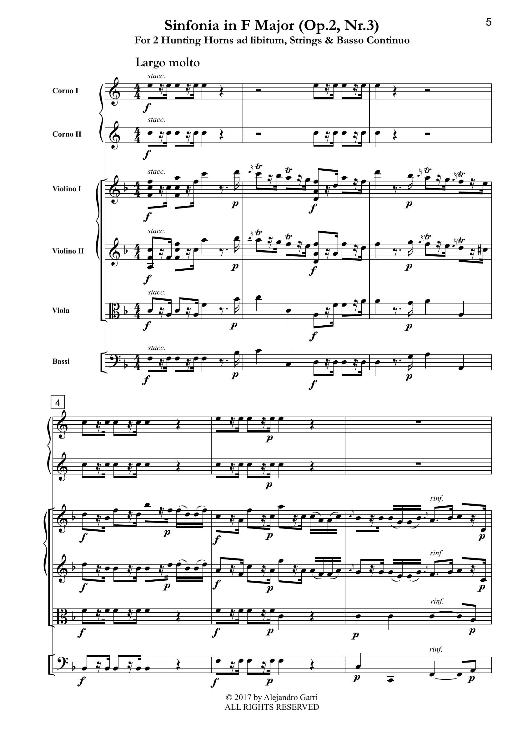 Holzbauer, Ignaz (1711 – 1783) Sinfonia in F Major, Op.2, Nr.3, for 2 Hunting Horns ad libitum, Strings & Basso Continuo (full score)