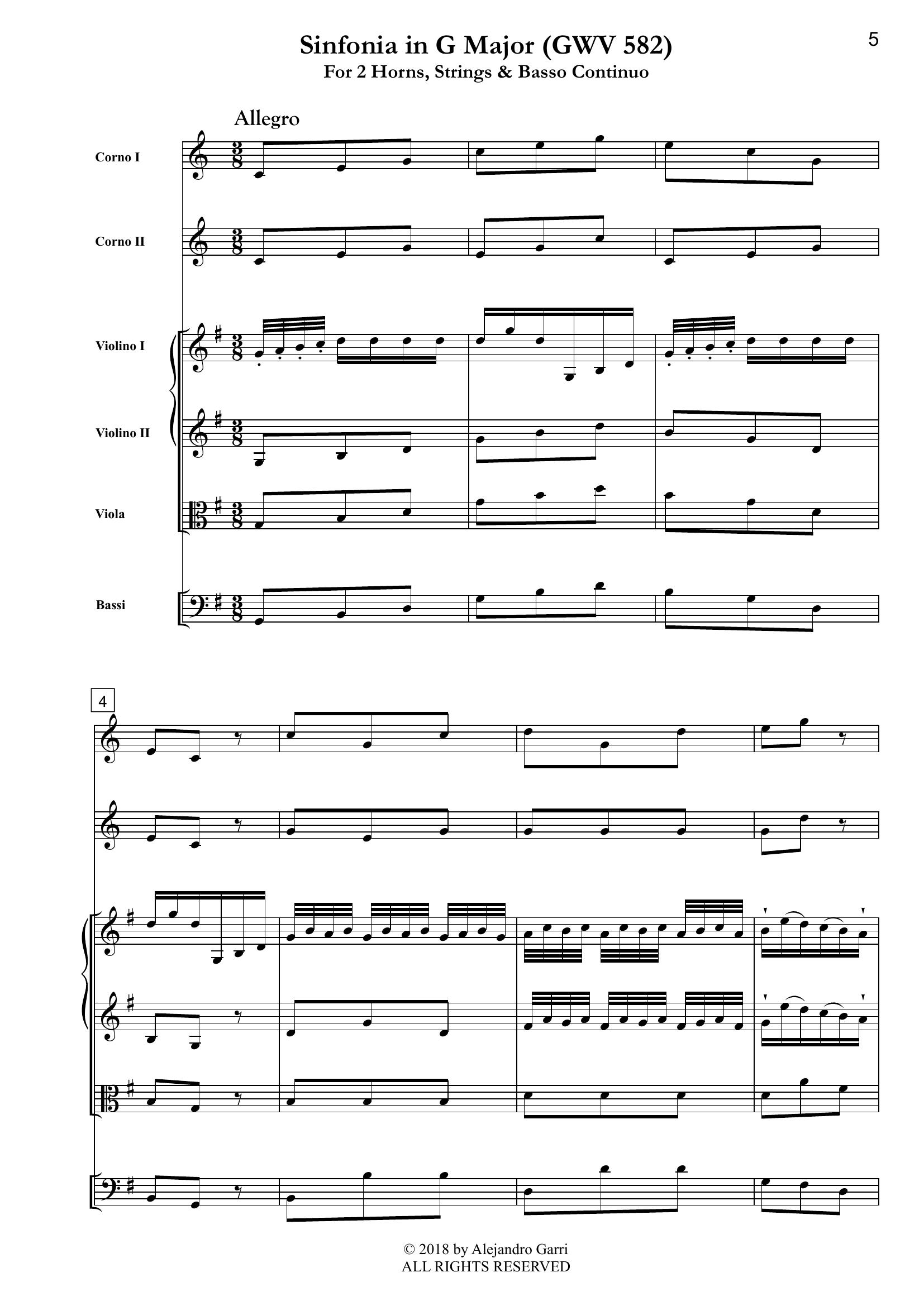 Graupner, Christoph (1683 – 1760) Sinfonia in G Major (GWV 582), for 2 Horns, Strings & Basso Continuo (full score)