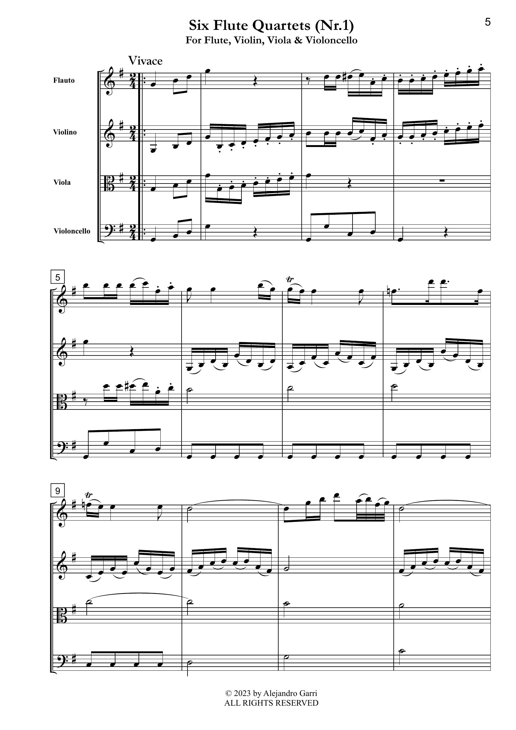 Graf, Friedrich Hartmann (1727 – 1795) Six Flute Quartets (Nr.1), for Flute, Violin, Viola & Violoncello (full score & 4 parts)