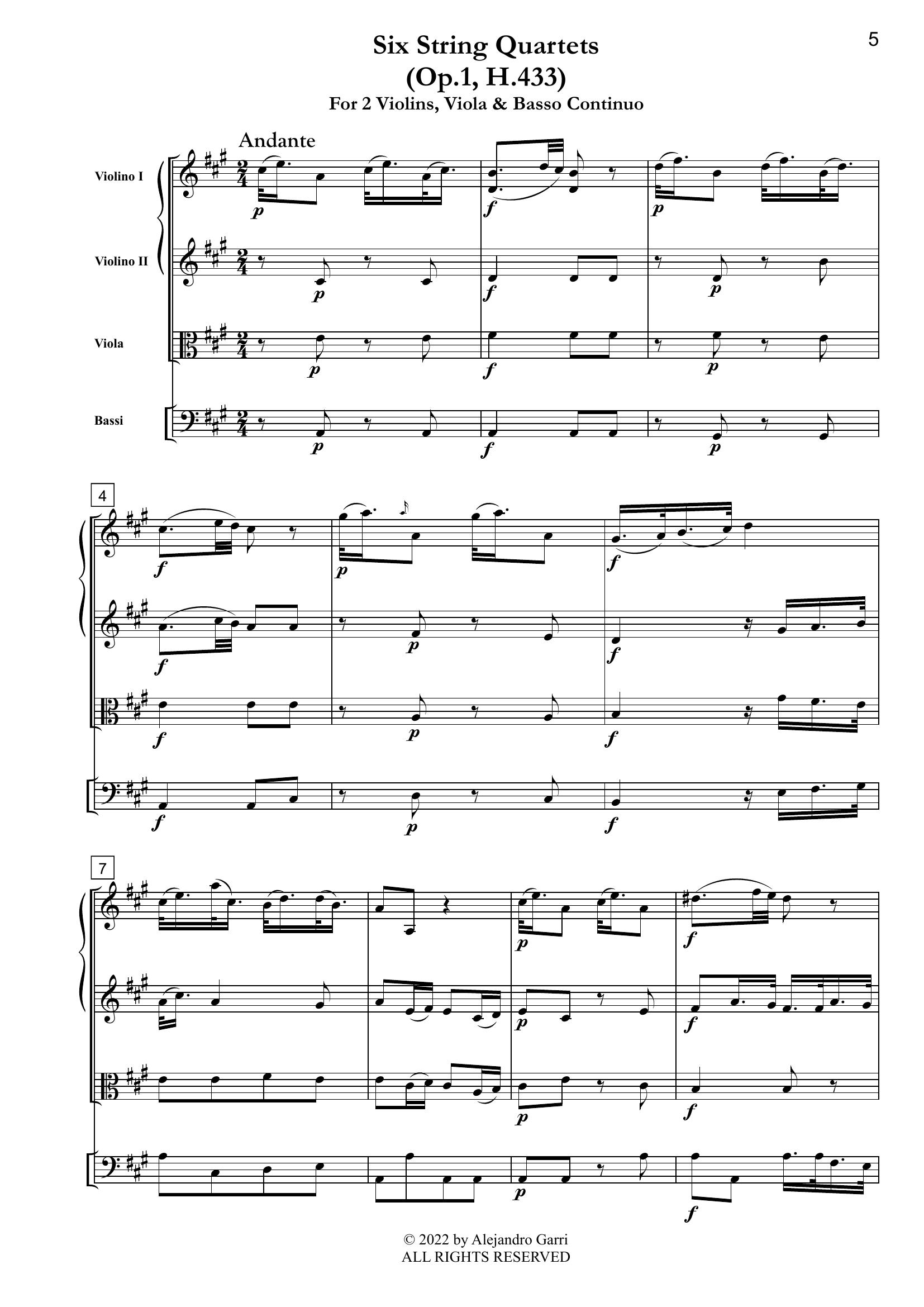 Gassmann, Florian Leopold (1729 – 1774) Six String Quartets, (Op.1, H.433), for 2 Violins, Viola & Basso Continuo (full score & 4 parts)