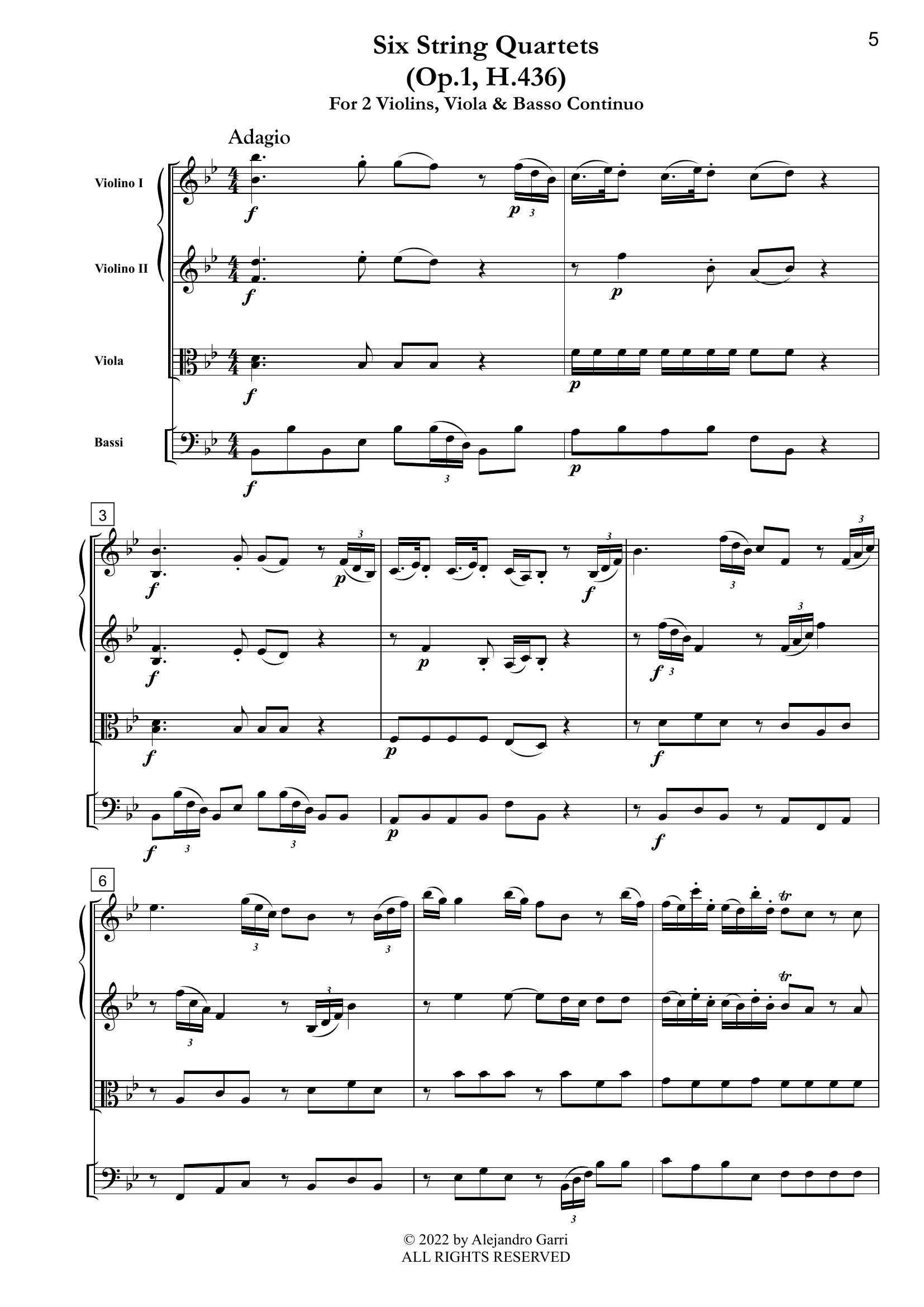 Gassmann, Florian Leopold (1729 – 1774) Six String Quartets, (Op.1, H.436), for 2 Violins, Viola & Basso Continuo (full score & 4 parts)