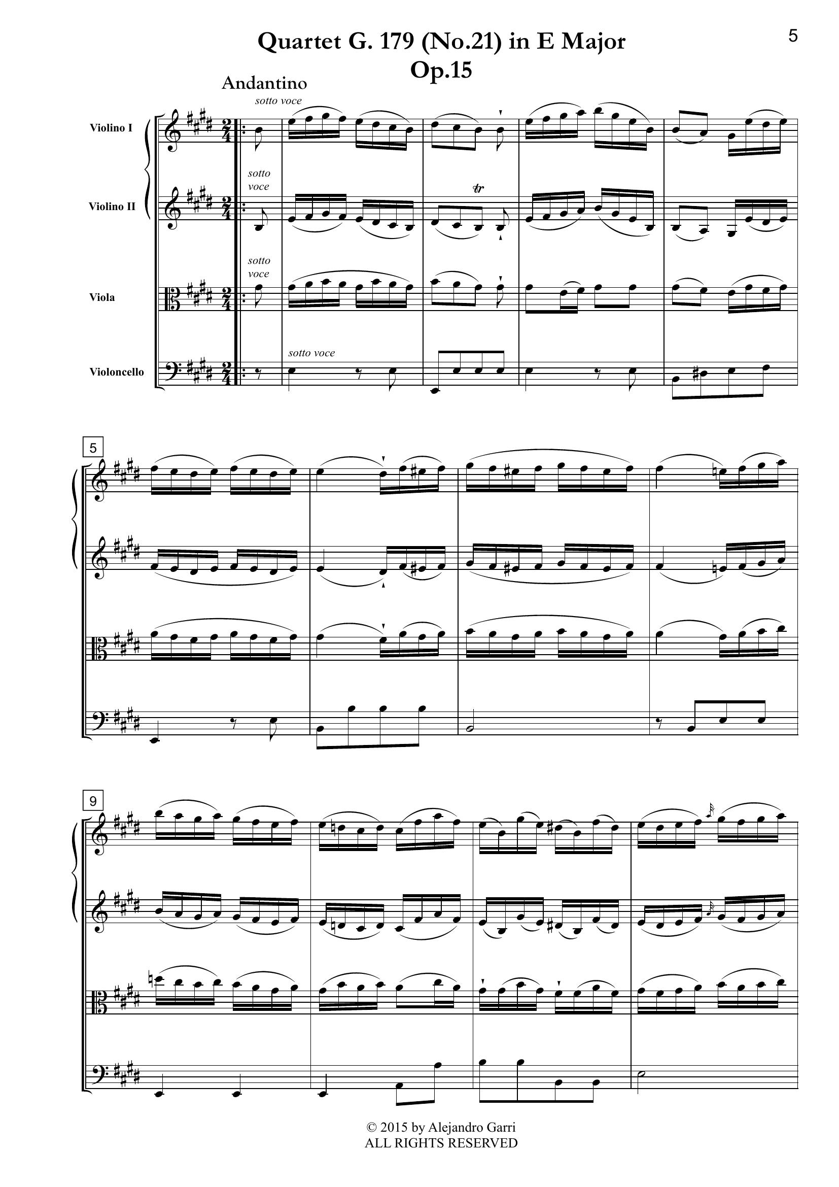 Boccherini, Luigi (1743 – 1805) Six String Quartets, Op.15 (G. 177 – 182), for 2 Violins, Viola & Violoncello, Volume 3 (full score & 4 parts)