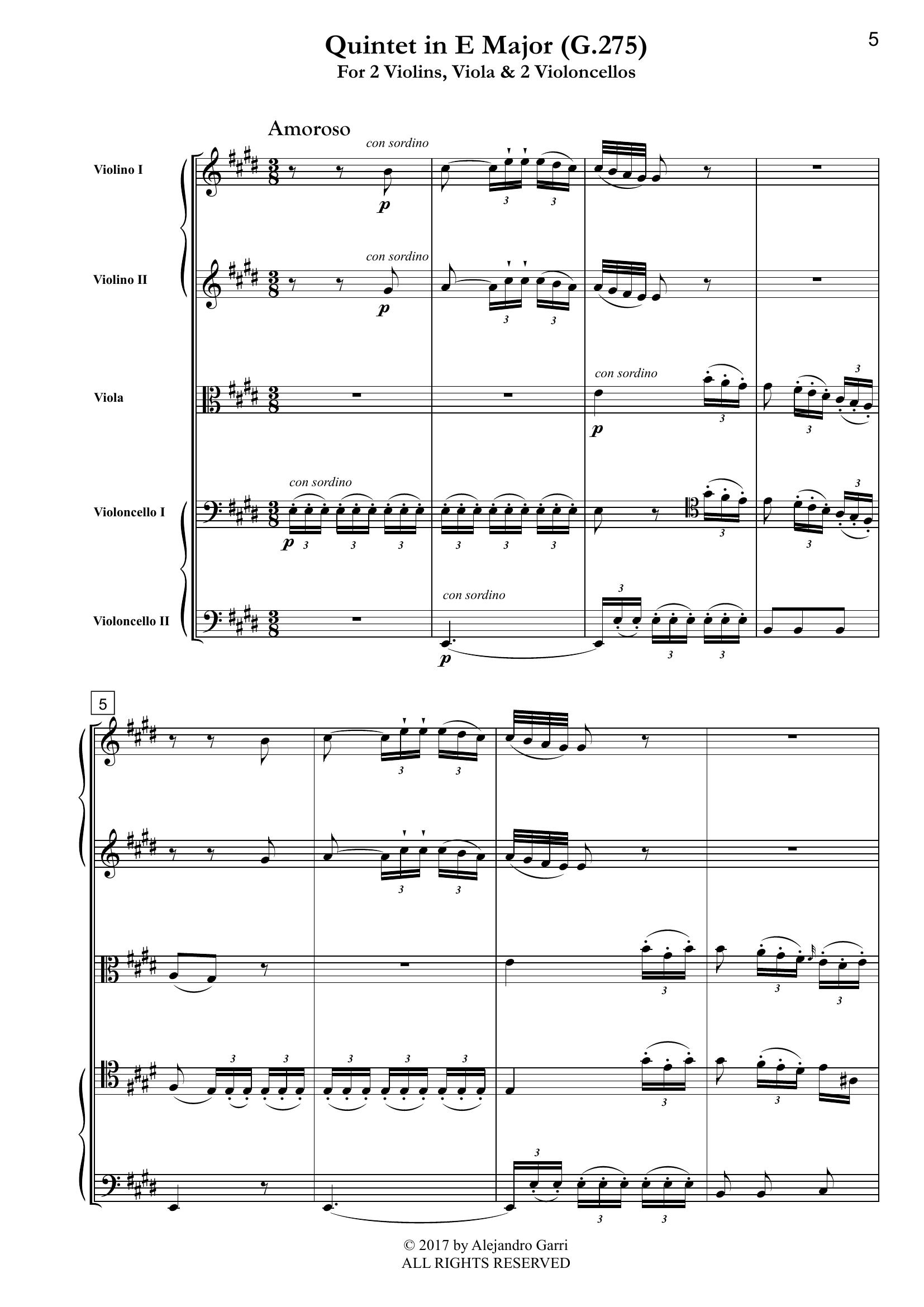 Boccherini, Luigi (1743 – 1805) Six String Quintets, Op.11, Volume 5, Quintet in E Major (G.275), for 2 Violins, Viola & 2 Violoncellos (full score)