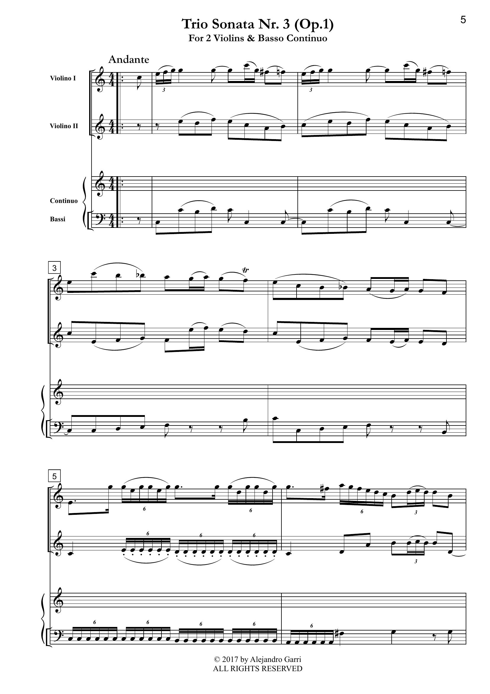 Pugnani, Gaetano (1731 – 1798) Six Trio Sonatas, Op.1, Nr.3, for 2 Violins & Basso Continuo (full score & 3 parts)