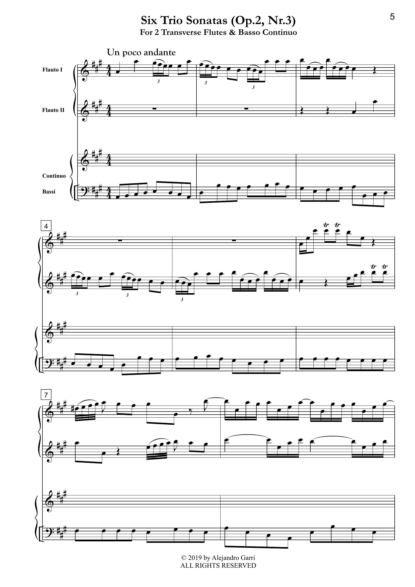 Hasse, Johann A. (1699 – 1783) Six Trio Sonatas (Op.2, Nr.3), for 2 Transverse Flutes & Basso Continuo (full score & 3 parts)