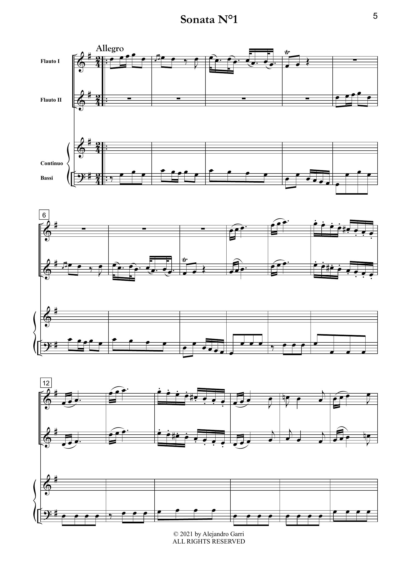 Agrell, Johan Joachim (1701-1765) Six Trio Sonatas (Op.3, Sonatas Nr.1,2,3), for 2 Transverse Flutes & Basso Continuo (full score & 3 parts)