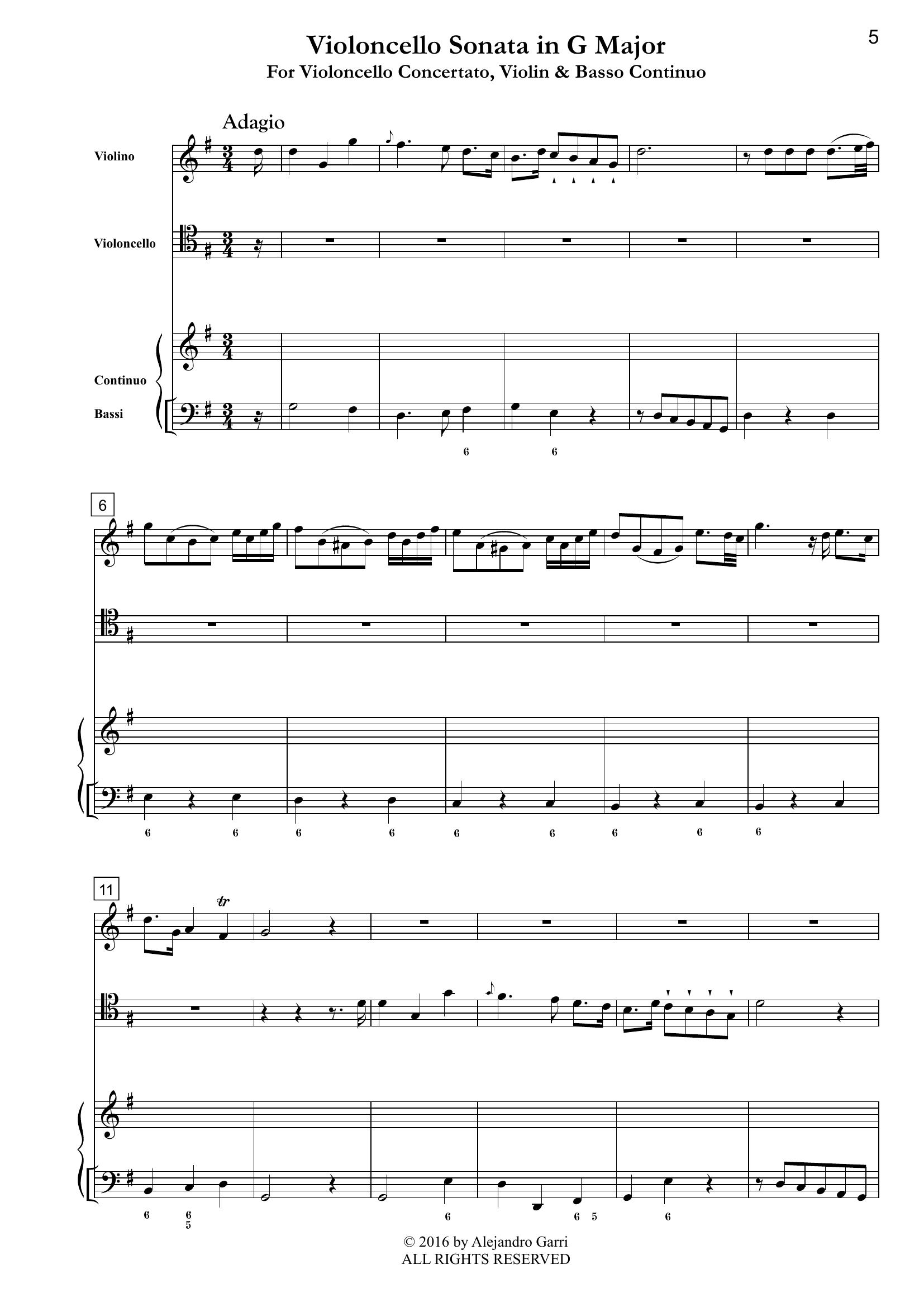 Porpora, Nicola (1686 – 1768) Six Violoncello Sonatas, for Violoncello Concertato, Violin & Basso Continuo, Volume 3 (full score & 3 Parts)