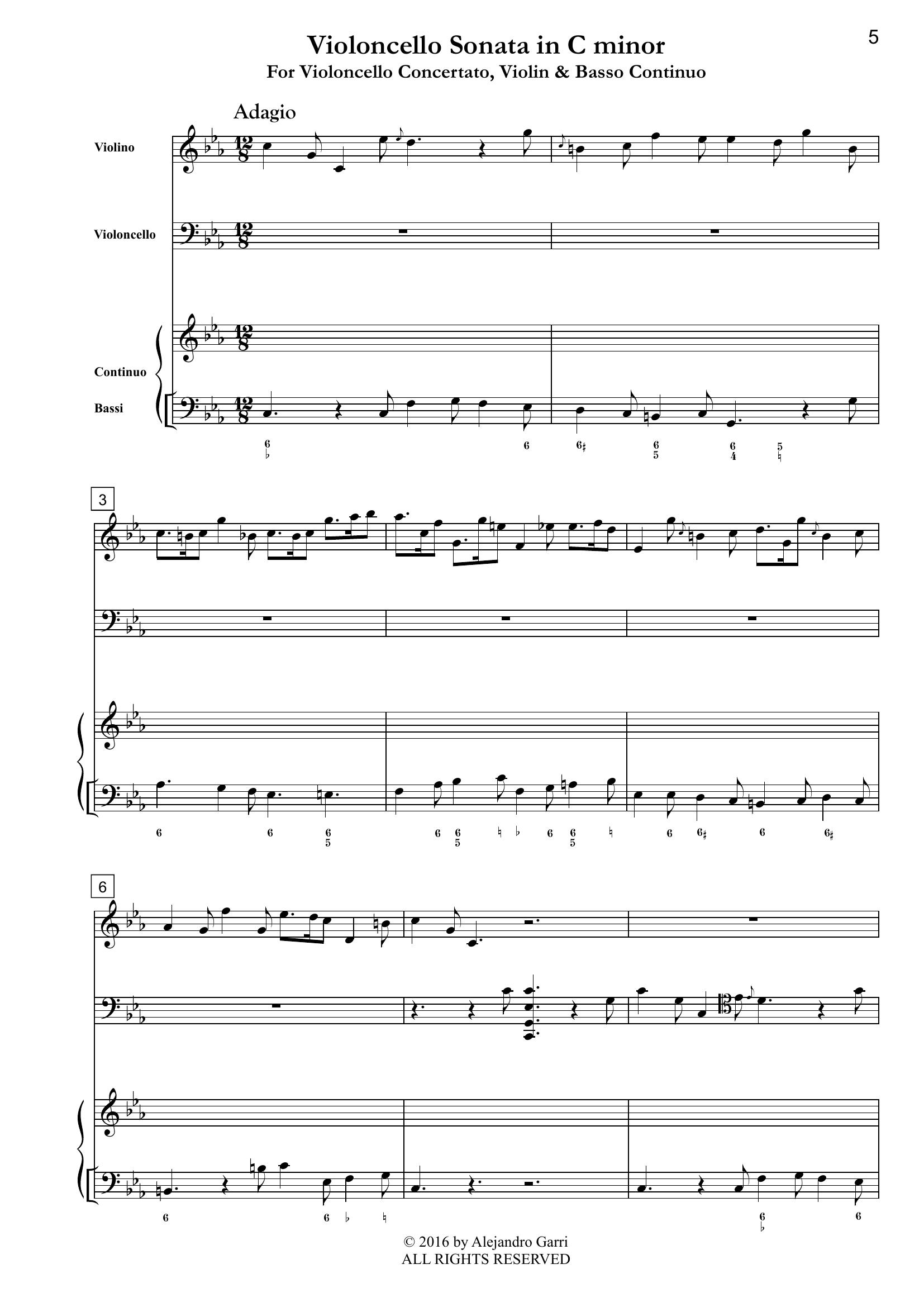 Porpora, Nicola (1686 – 1768) Six Violoncello Sonatas, for Violoncello Concertato, Violin & Basso Continuo, Volume 5 (full score & 3 Parts)