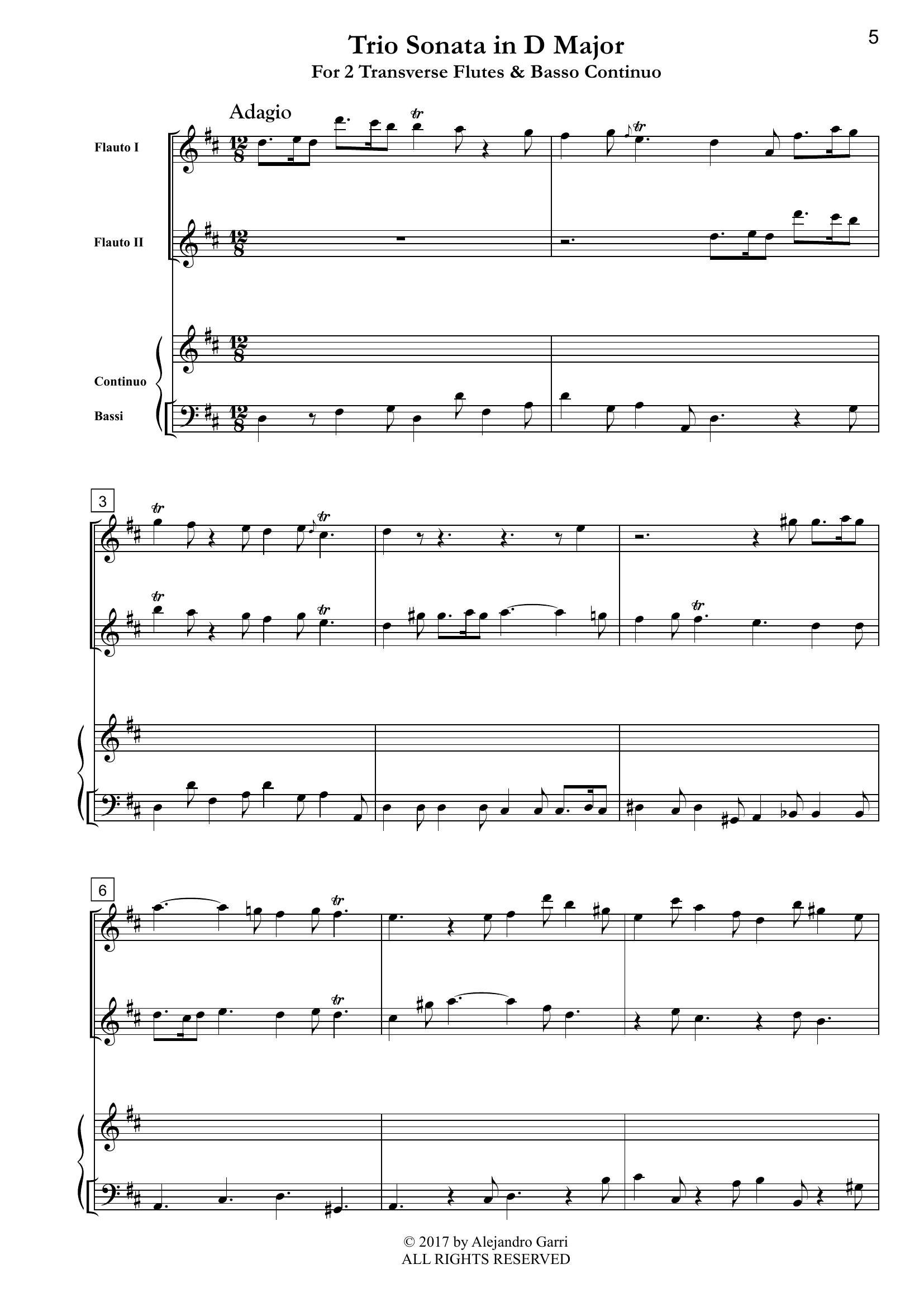Hasse, Johann Adolf (1699 – 1783) Sonata in D Major, for 2 Transverse Flutes & Basso Continuo (full score & 3 parts)