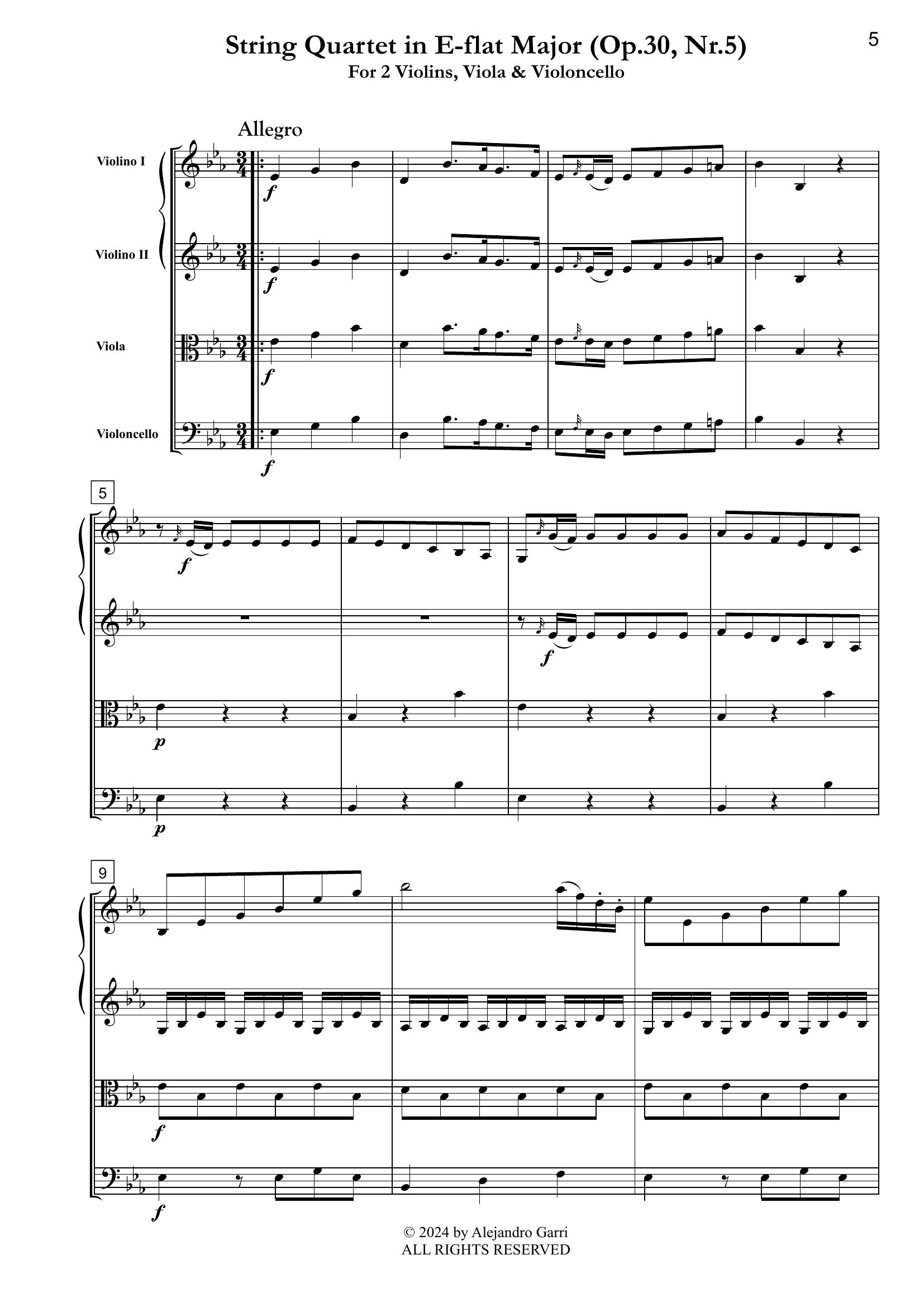 Stamitz, Anton (1750 – 1809) String Quartet in E-flat Major (Op.30, Nr.5), for 2 Violins,Viola & Violoncello (full score & 4 parts)